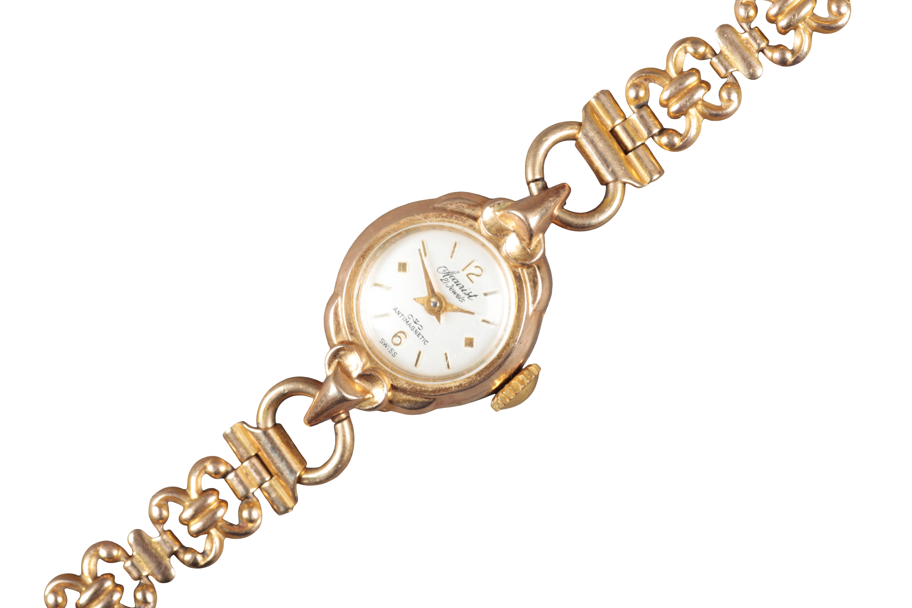 with manual wind movement, silver dial, gold baton numerals, gold hands, case diameter approx. 15mm, 10.20 grams gross weight