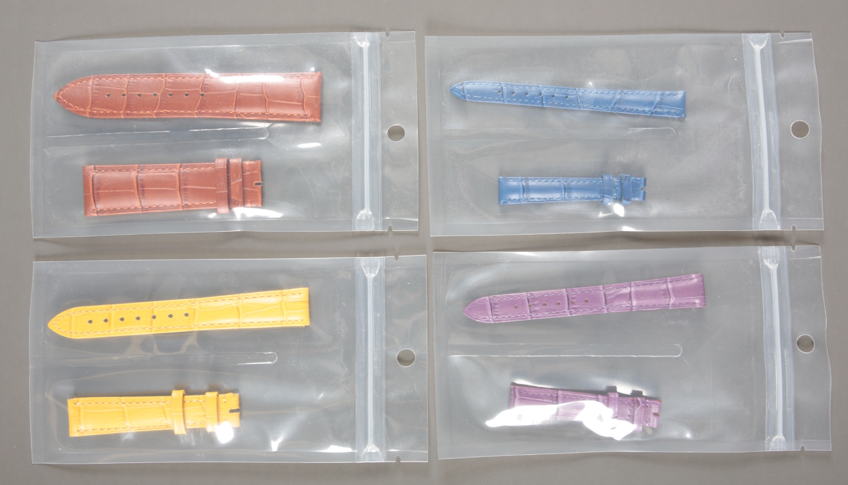 size 22, in its original packaging, old shop stock; together with three other leather watch straps, sizes 16, 14 and 12, in original packaging, old shop stock (4)