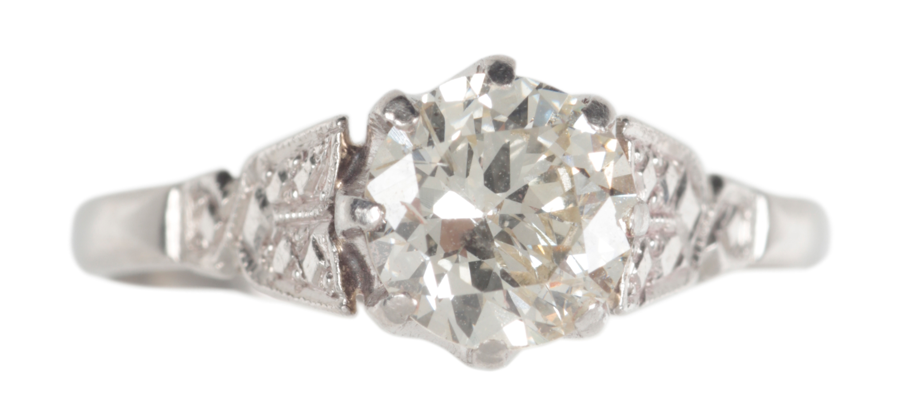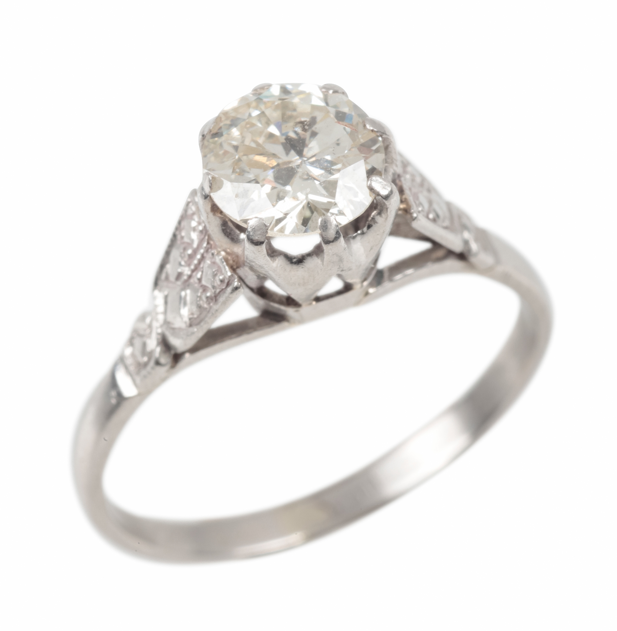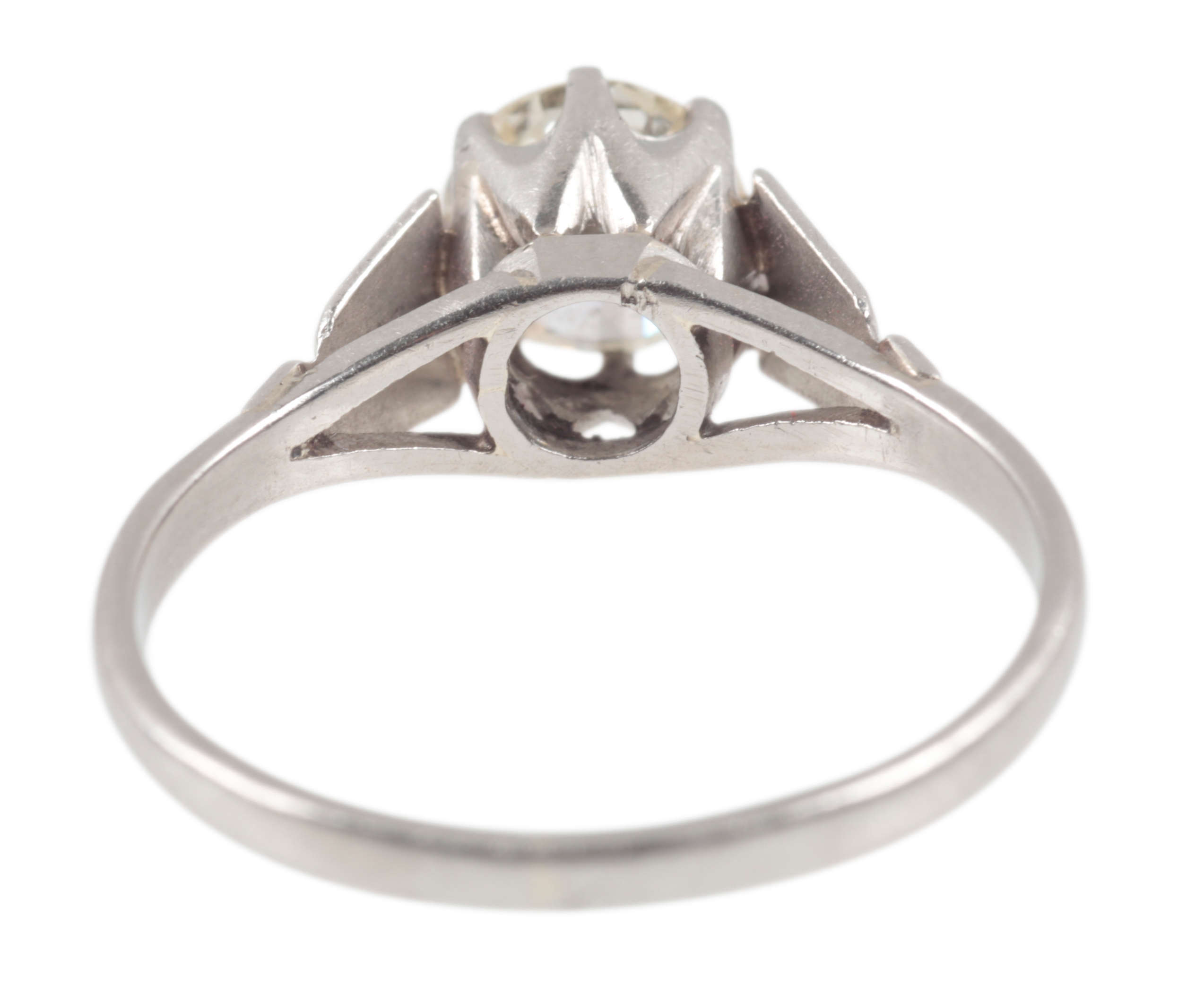 the round brilliant cut diamond, c. 0.85 carats, unmarked surface testing as 18ct, ring size M, c. 3.3 grams