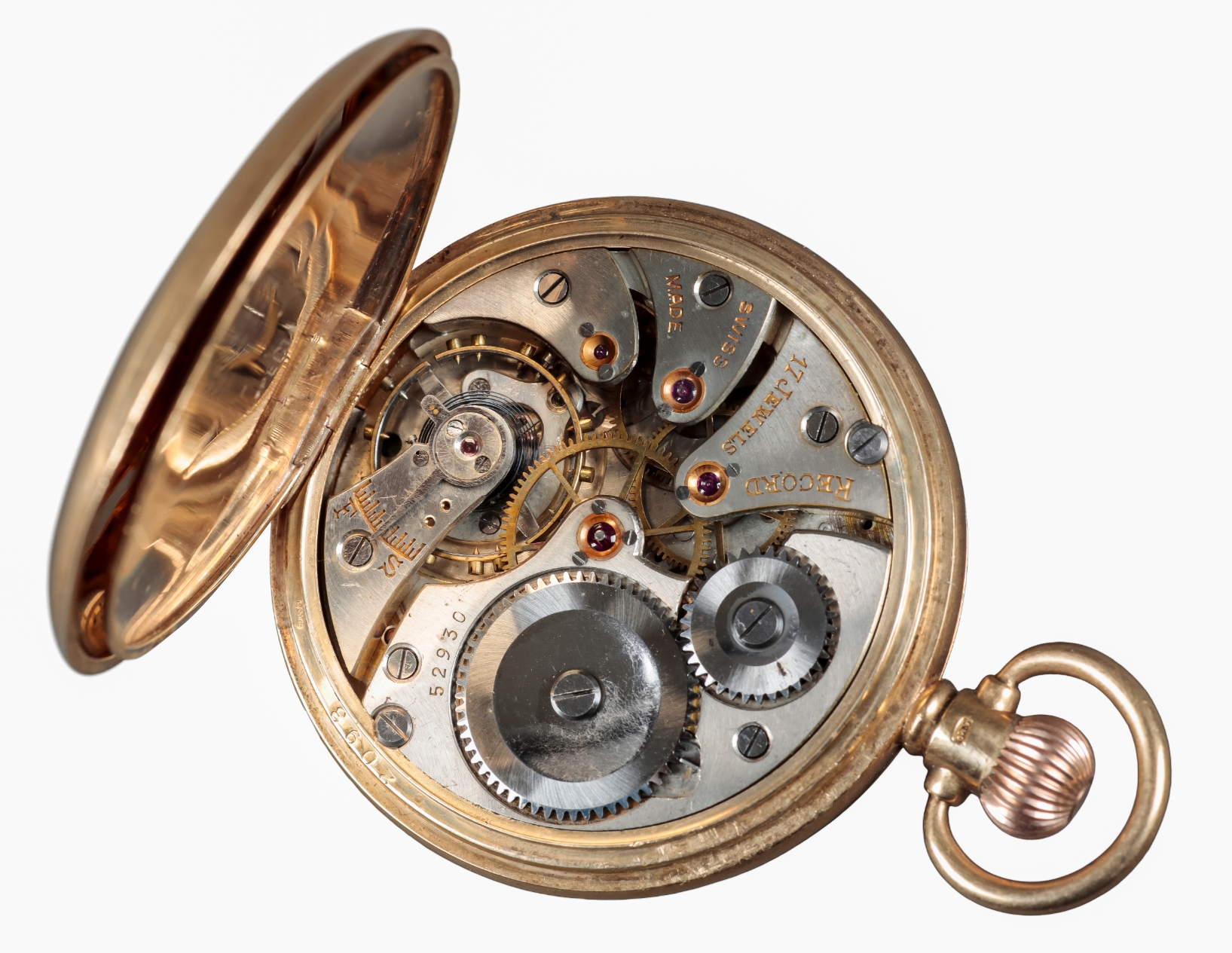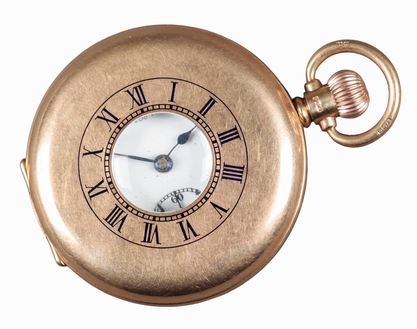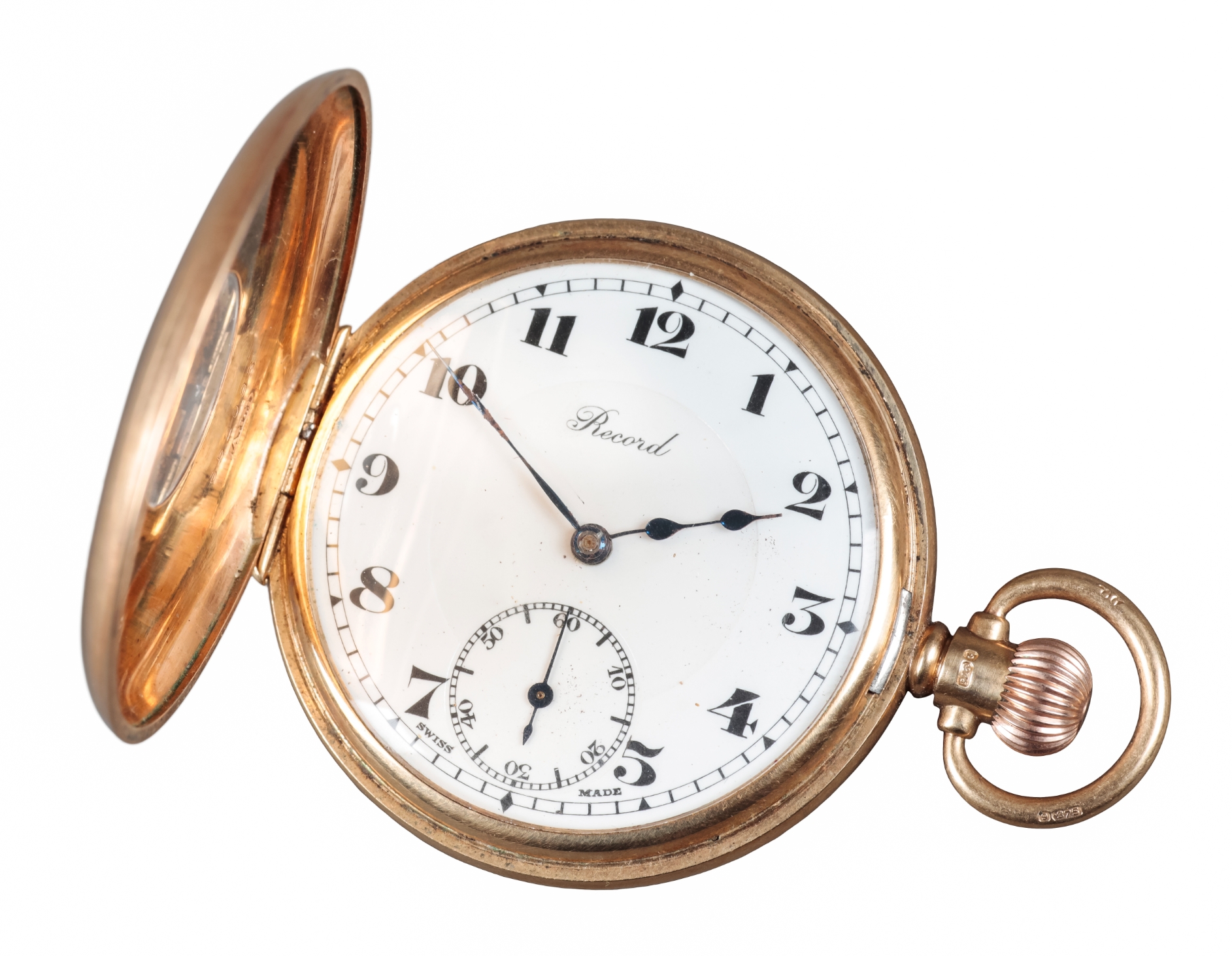 RECORD: A 9CT GOLD HALF HUNTER POCKET WATCH