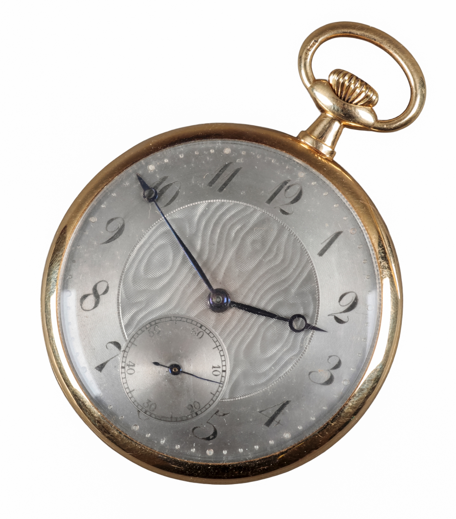with keyless wind movement, silver dial, dark blue steel hands, subsidiary dial, black Arabic numerals, with engraved inscription inside the case 'Given to George Potts in the memory of Alexander Alan Paignton, CB, whose watch this was', case diameter approx. 45mm, c. 58.88 grams gross weight