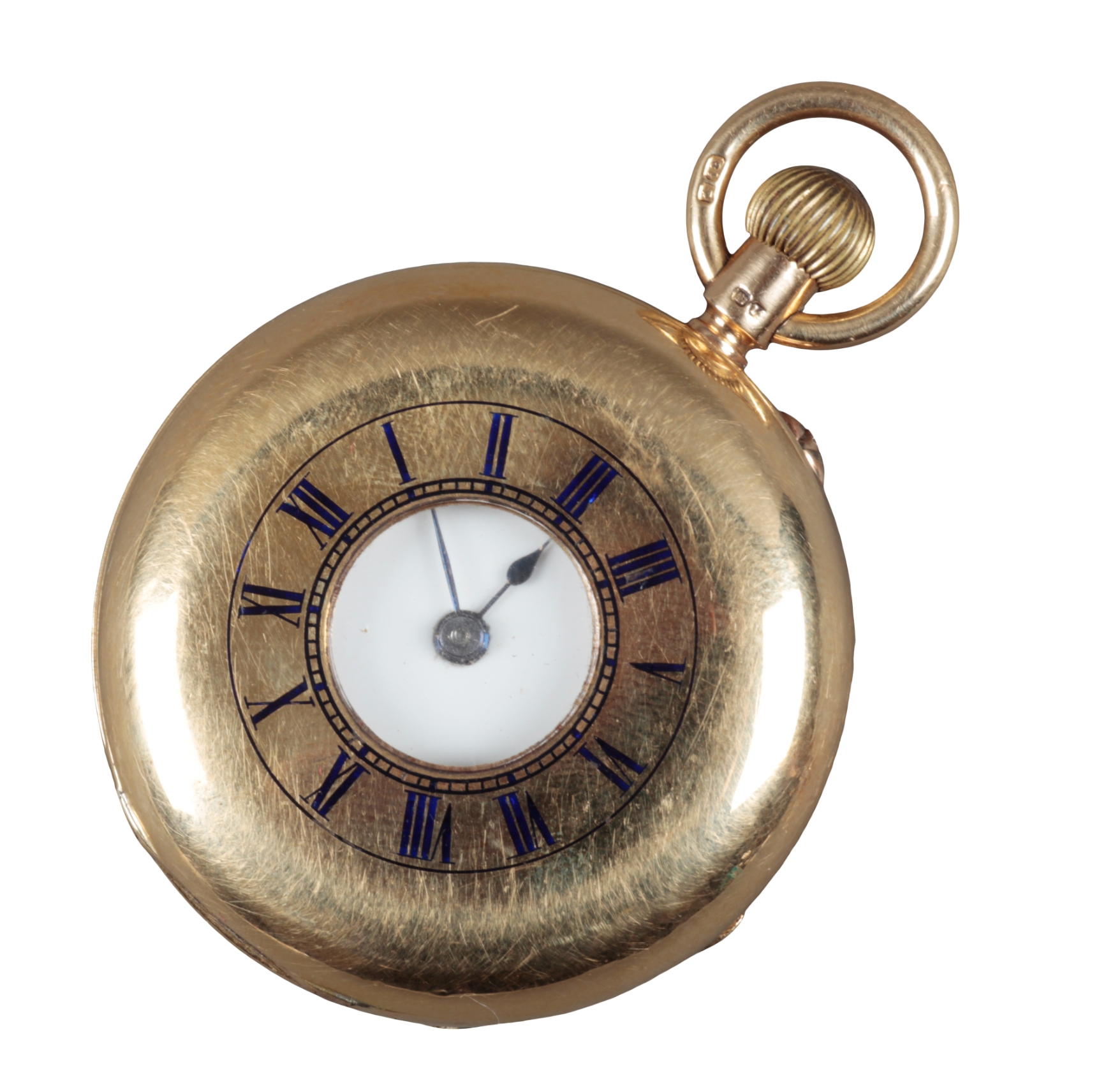 AN 18CT GOLD HALF HUNTER POCKET WATCH