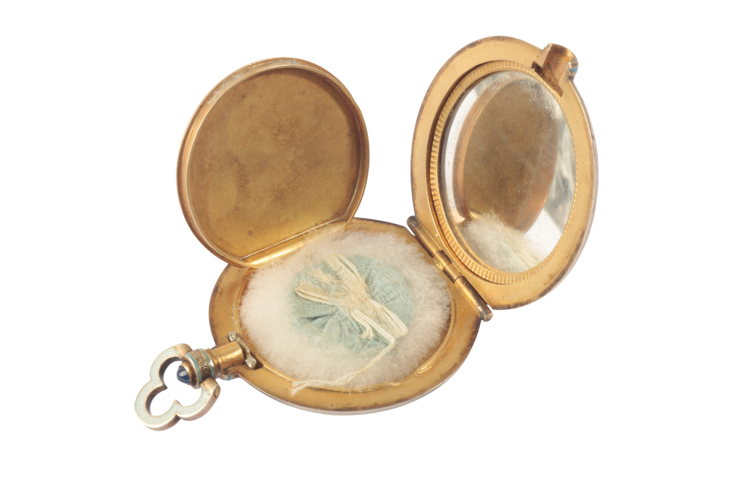 AN ENAMELLED POWDER COMPACT IN THE FORM OF A POCKET WATCH
