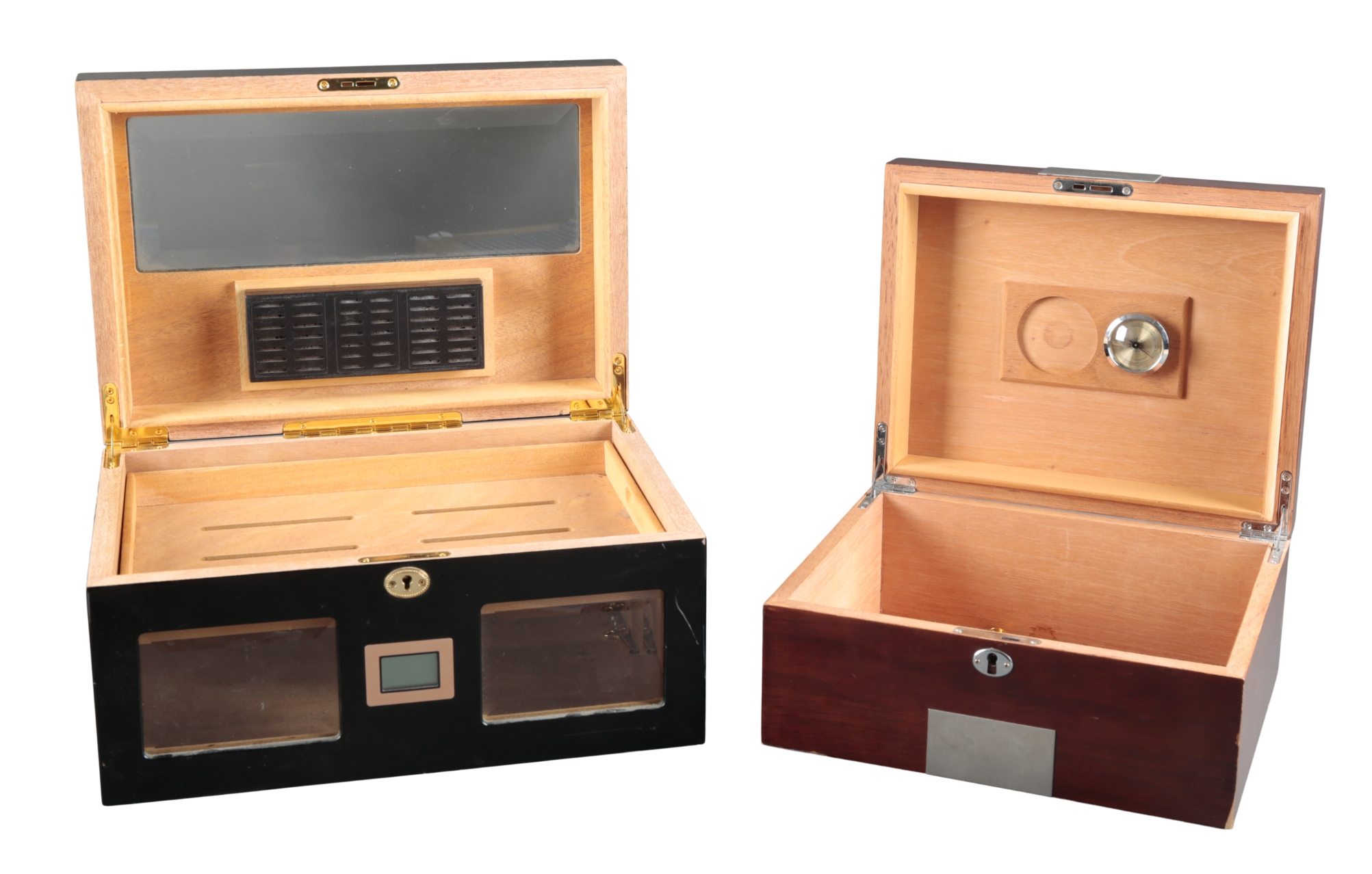 Both humidors have some surface marks and scratches to the cases and some scuffs to the corners.