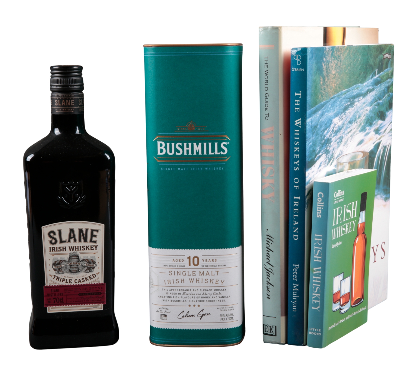 one 70cl bottle, boxed; together with Slane Triple Casked blended Irish Whiskey, one 70cl bottle; and three books about Irish Whisky (5)