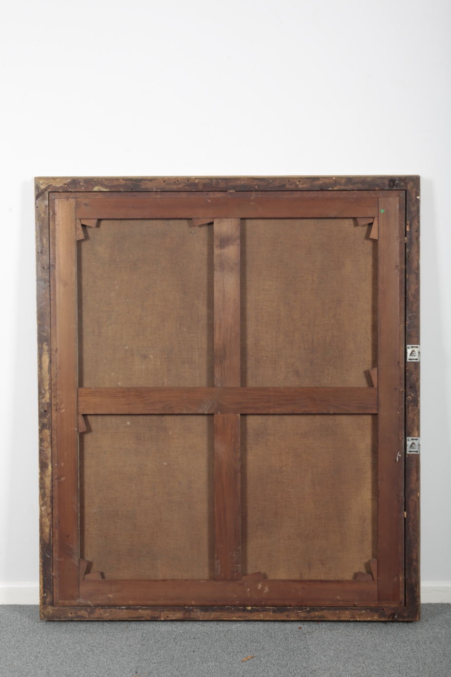 The painting is in good overall condition. The picture surface is stable; it has been restored, relined and cleaned - probably at some point within the last 50 years. Picture surface tension is good and the surface bears a clear, glossy varnish layer. There is craquelure throughout. There is an area of surface abrasion to the far middle left, taking the form of a vertical line with some accompanying areas of discolouration. There are some small areas of abrasion scattered across the picture surface, but these are generally minor.  The frame bears some areas of loss. Please see additional images available on request.