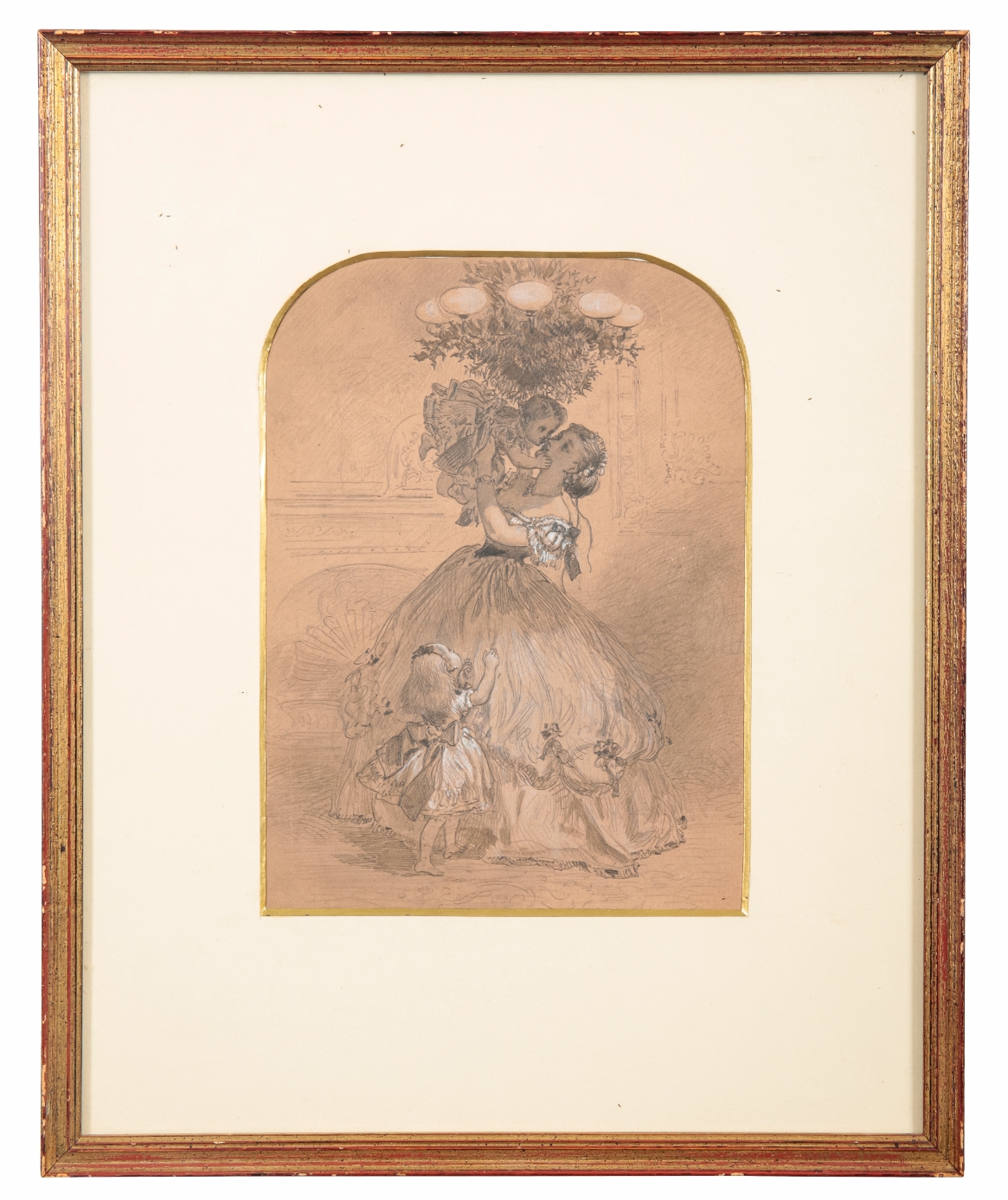 inscribed to label verso, pencil heightened with white, 22cm x 16cm