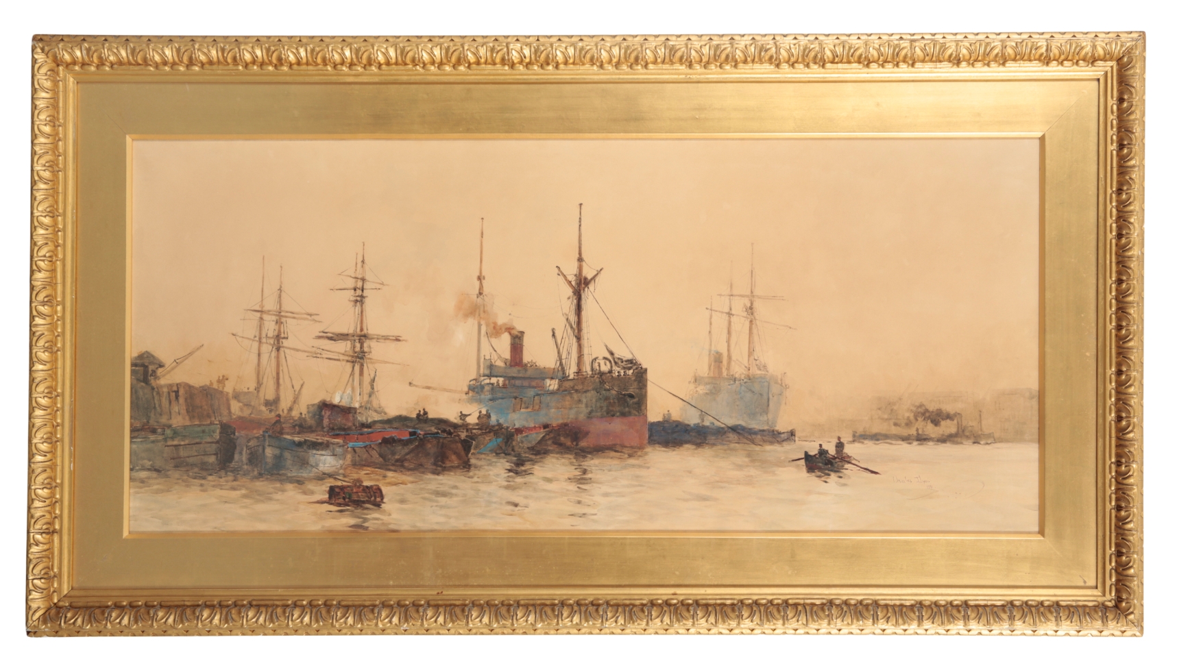 1891, signed and dated lower right, watercolour on paper laid to canvas, 48cm x 114cm