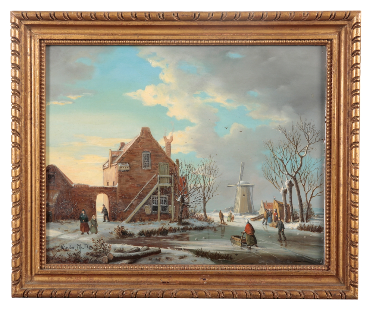 VANDER MEULLEN (20TH CENTURY) Dutch ice skating scenes with windmills