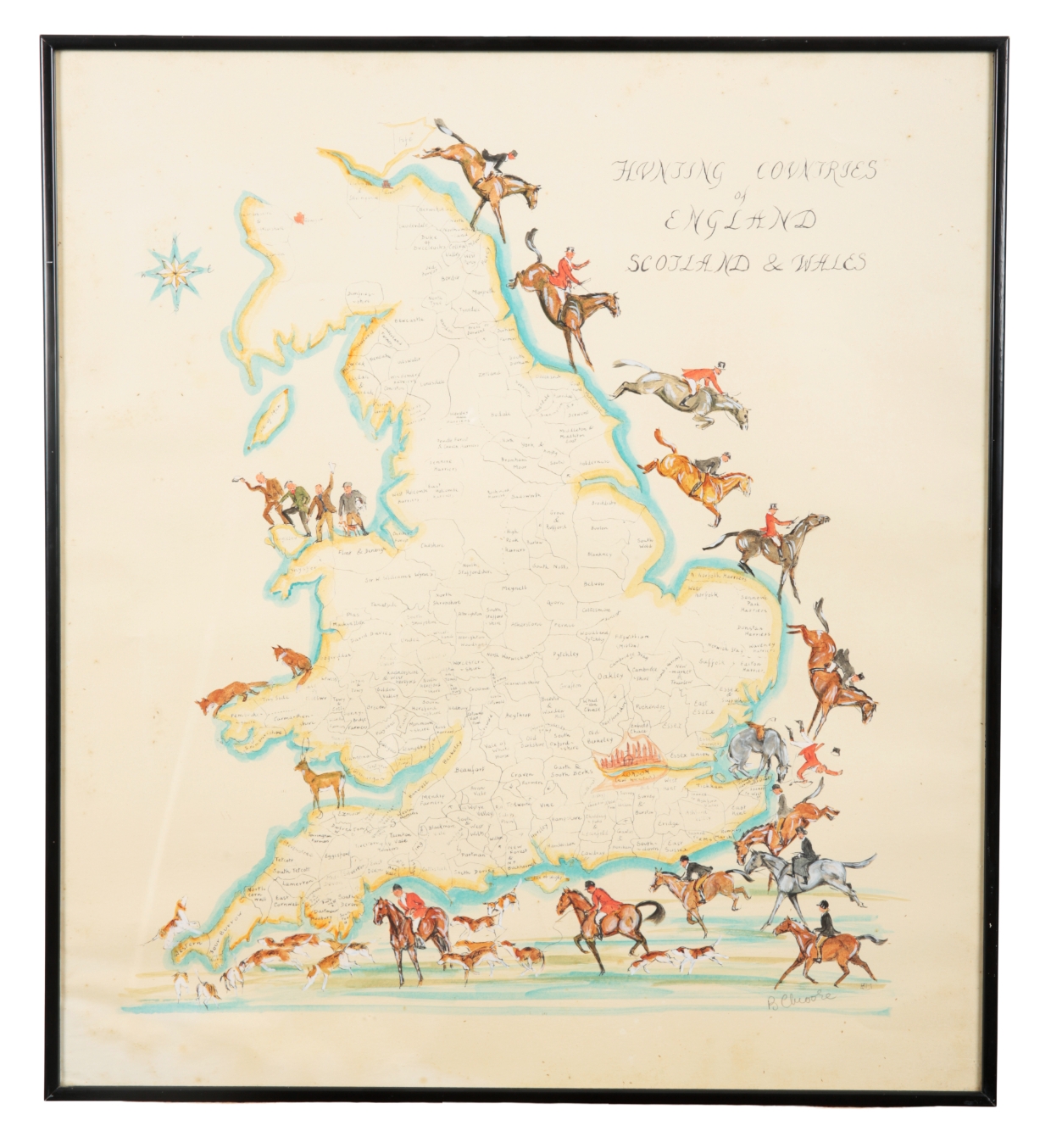 signed in pencil lower right, lithograph with hand colouring, 57cm x 51cm