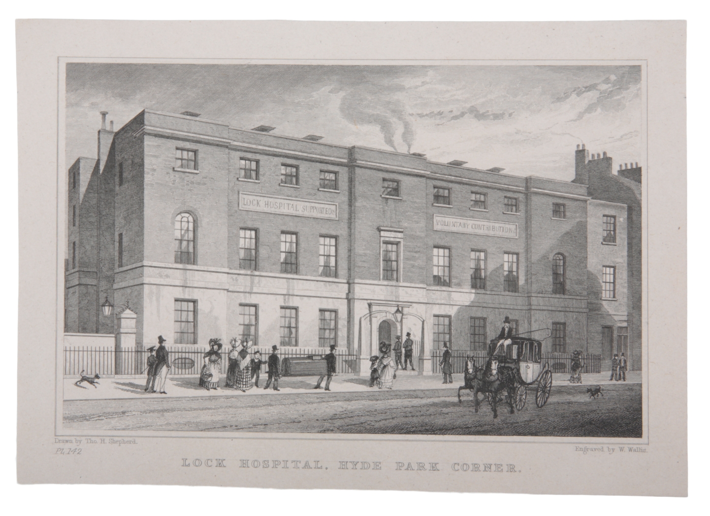 comprising prints from various periods, including scenes from the 'Modes de Paris', an engraving depicting Thomas Hardy's study at Max Gate by Howard Phipps, scenes after George Cruikshank, London views after Thomas Shepherd, panoramic etchings after various artists, ecclesiastic views after Edward Blore, among others, with accompanying scholarly notes (a lot)