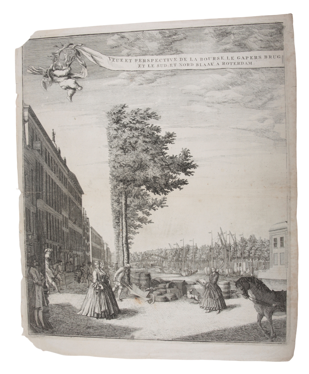 1781, engraving, 43cm x 59cm; together with an engraving depicting a Dutch street scene by J. F. Lindenberg, 58cm x 49cm, both unframed (2)