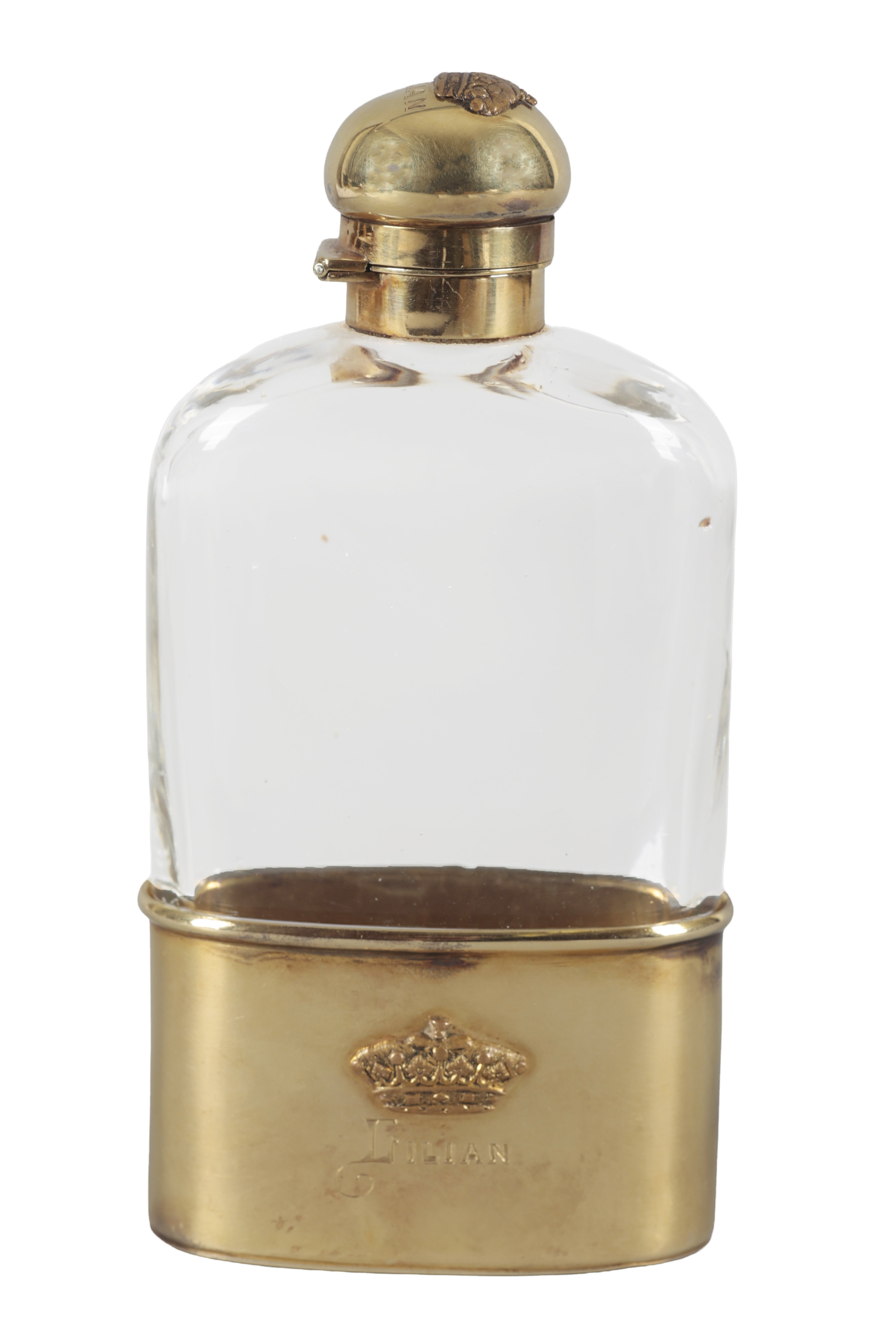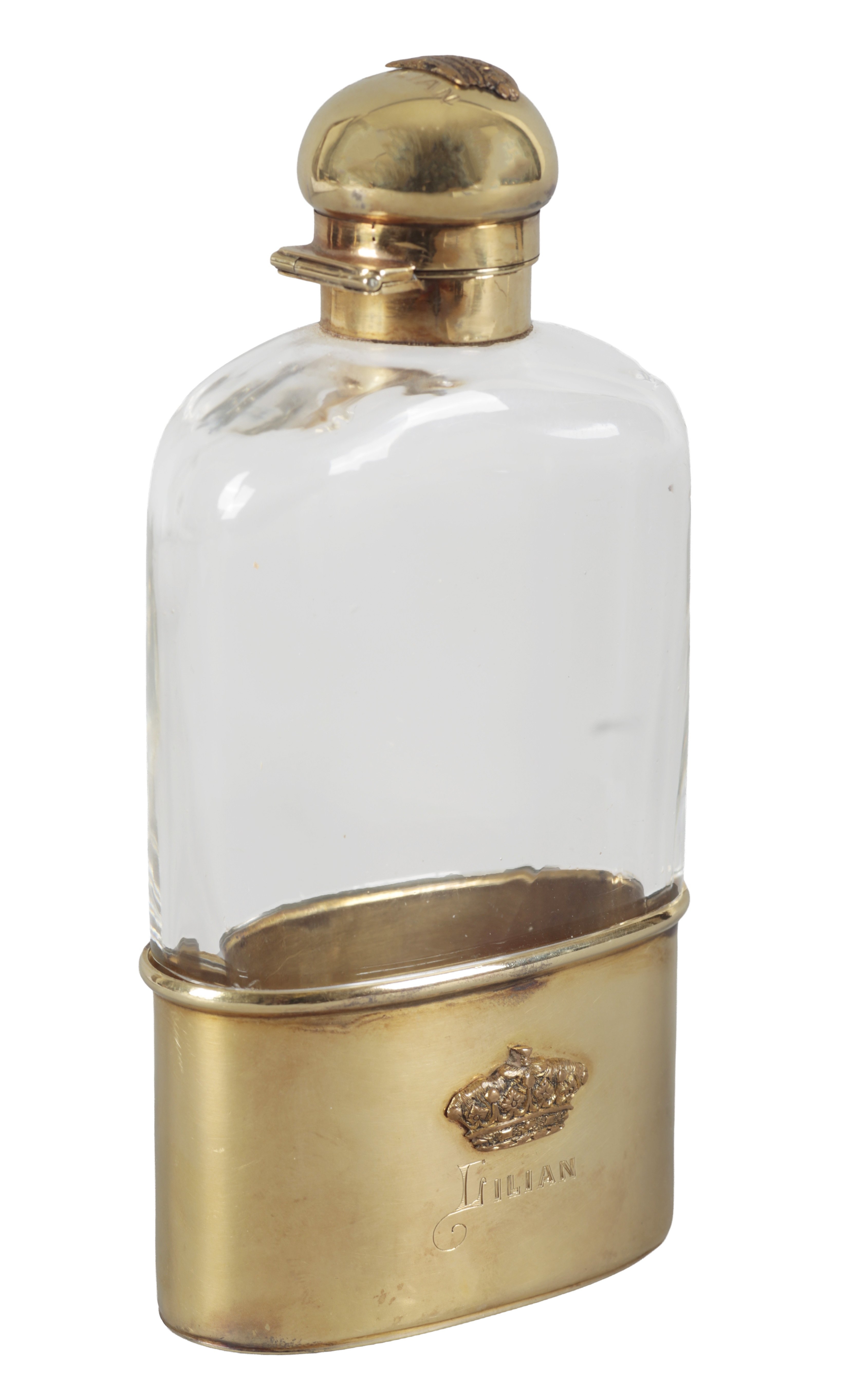 London 1888, the detachable base and stopper both bearing the applied crown of an Earl or Countess, further engraved 'Lilian', 14cm high x 7cm wide x 4cm deep