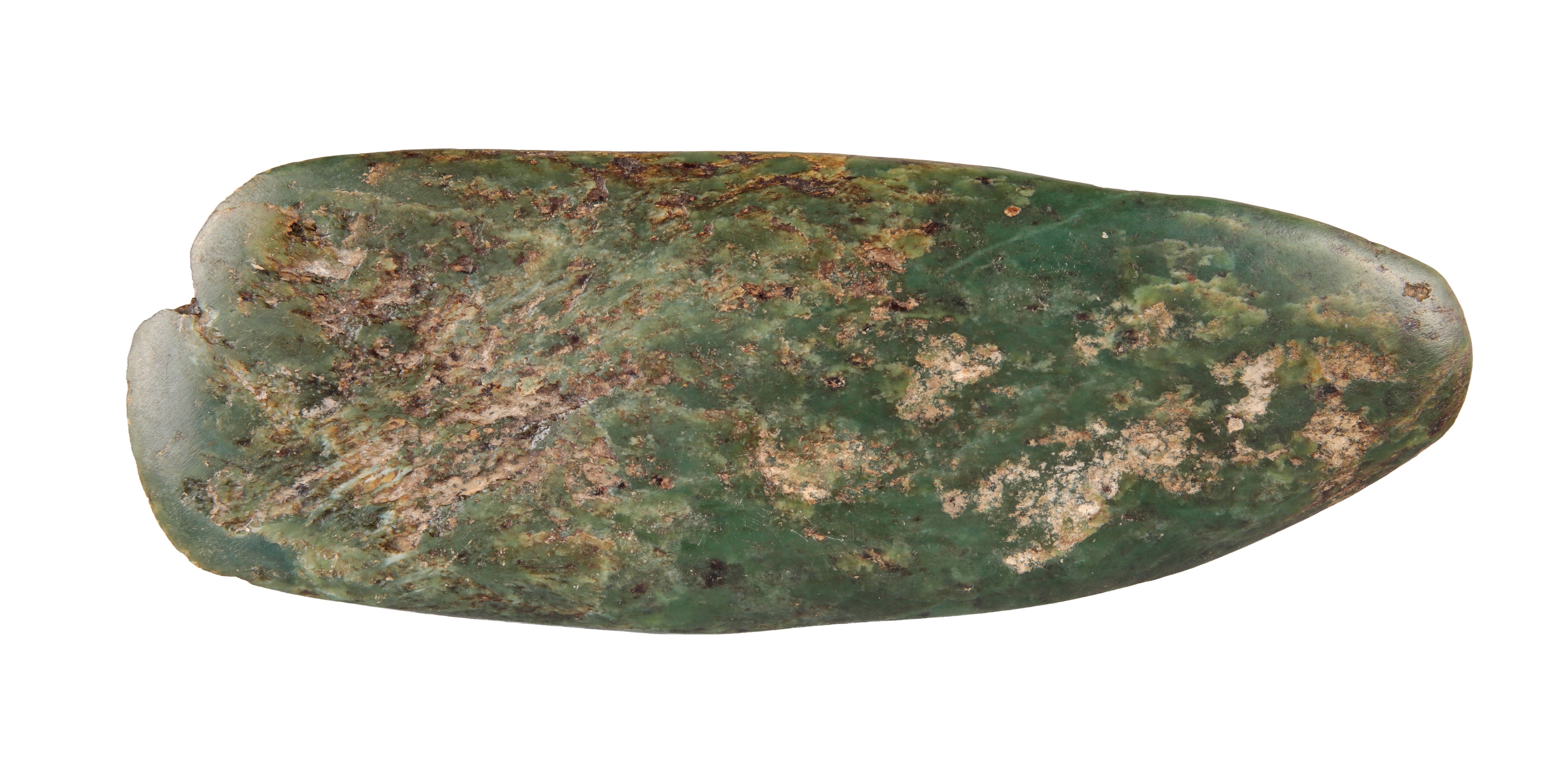 possibly Polynesian, shaped and polished with natural inclusions, 21cm long x 7.5cm high Provenance: The Peter Newall Collection.