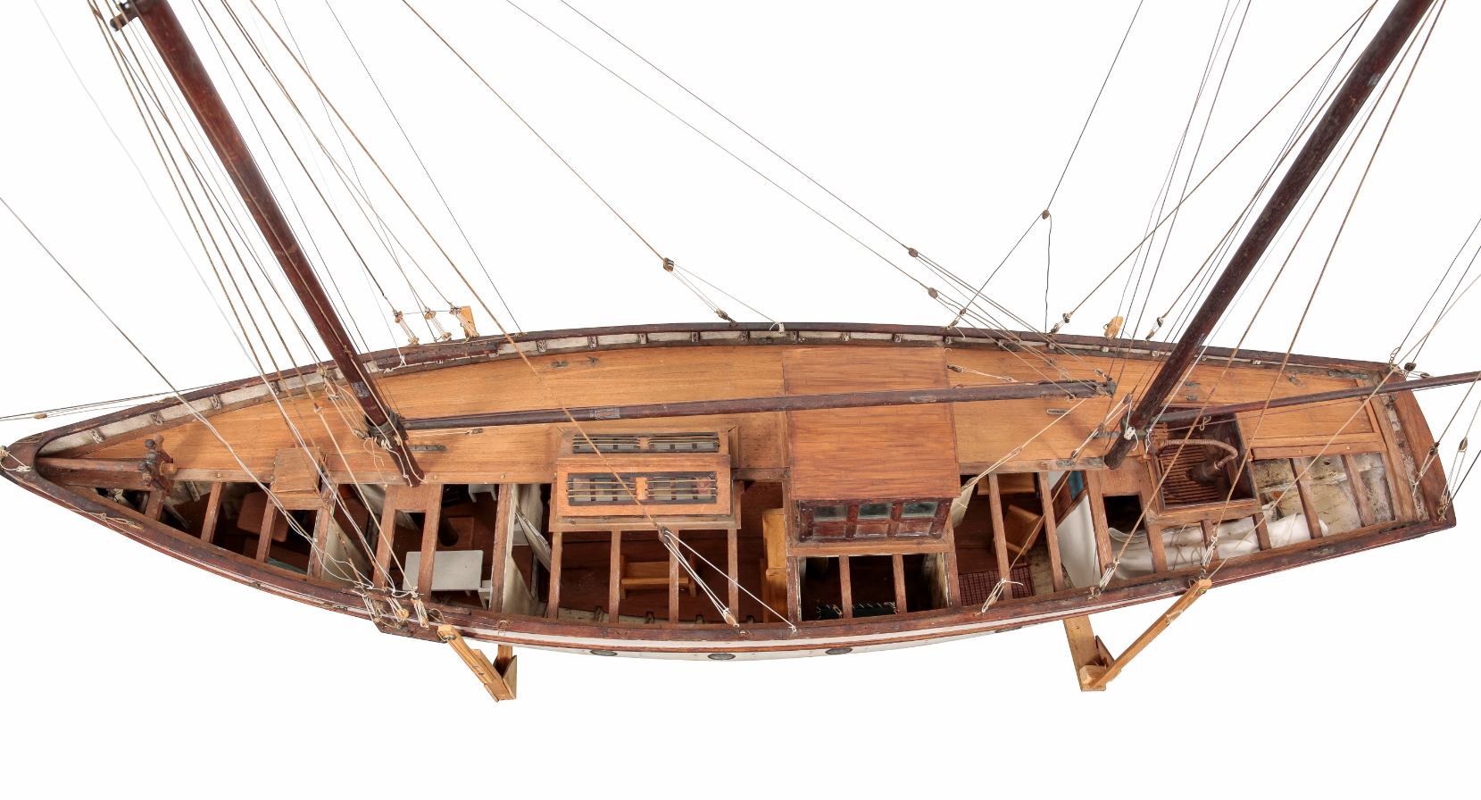 A LARGE WOODEN MODEL CUTTER YACHT 'HELAFLOTE'