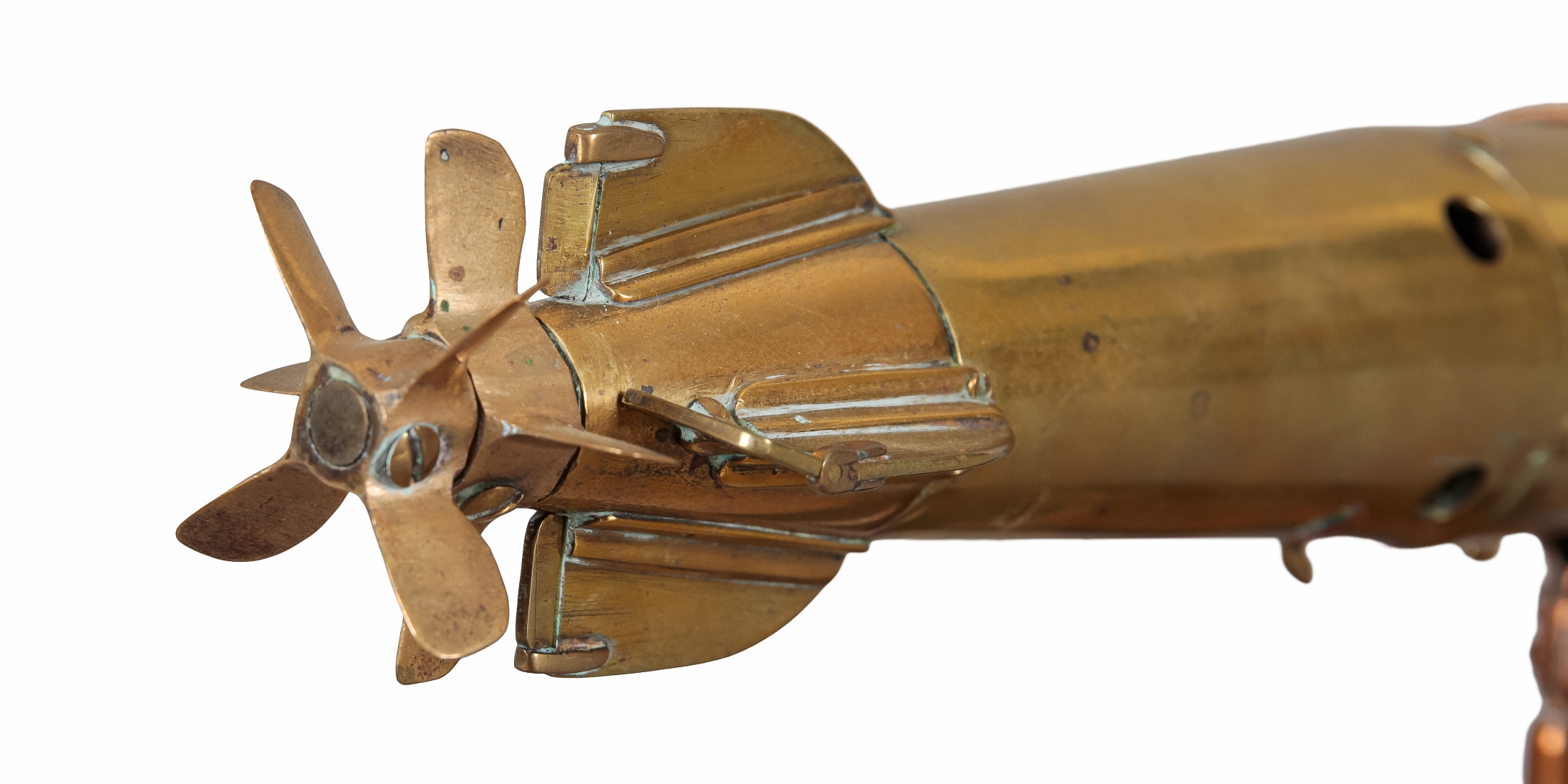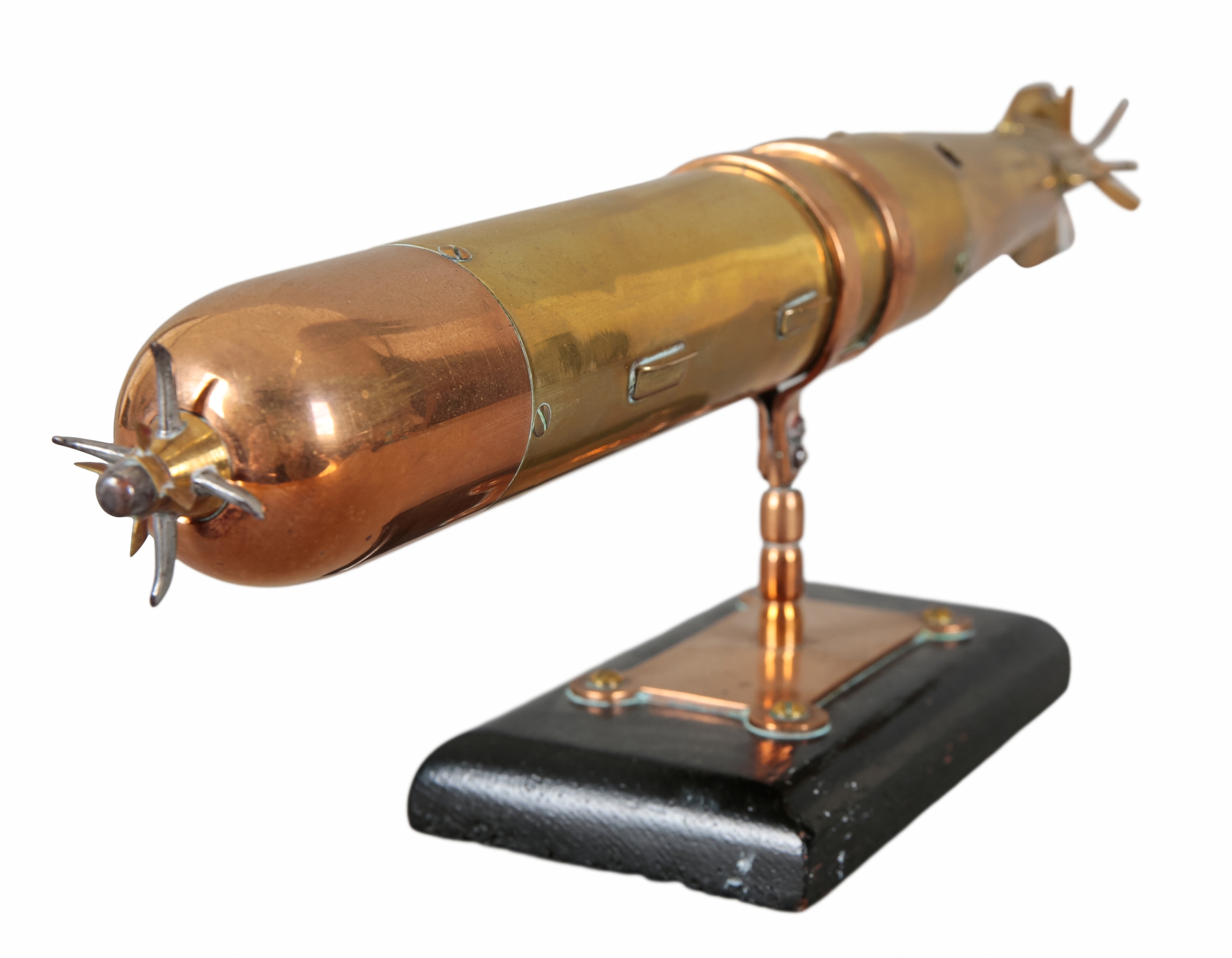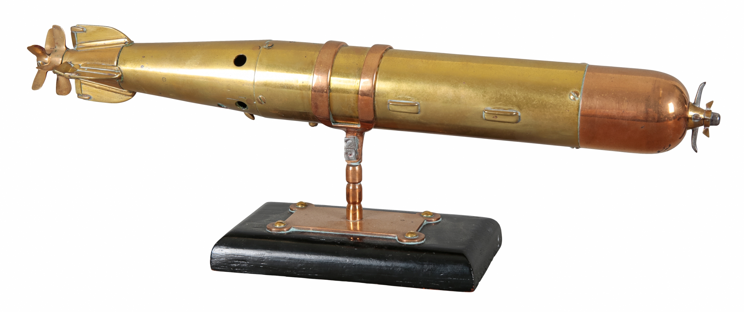 A BRASS AND COPPER ENGINEER'S MODEL OF A TORPEDO