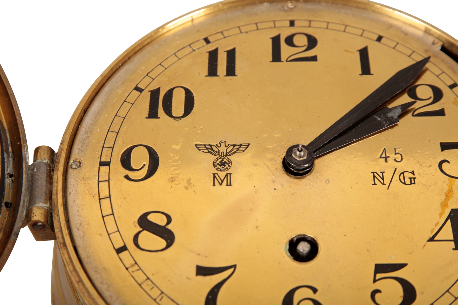 the dial engraved with an eagle and swastika over an M and numbered '45 N/G', with Arabic numerals, 20cm diameter x 10cm deep
