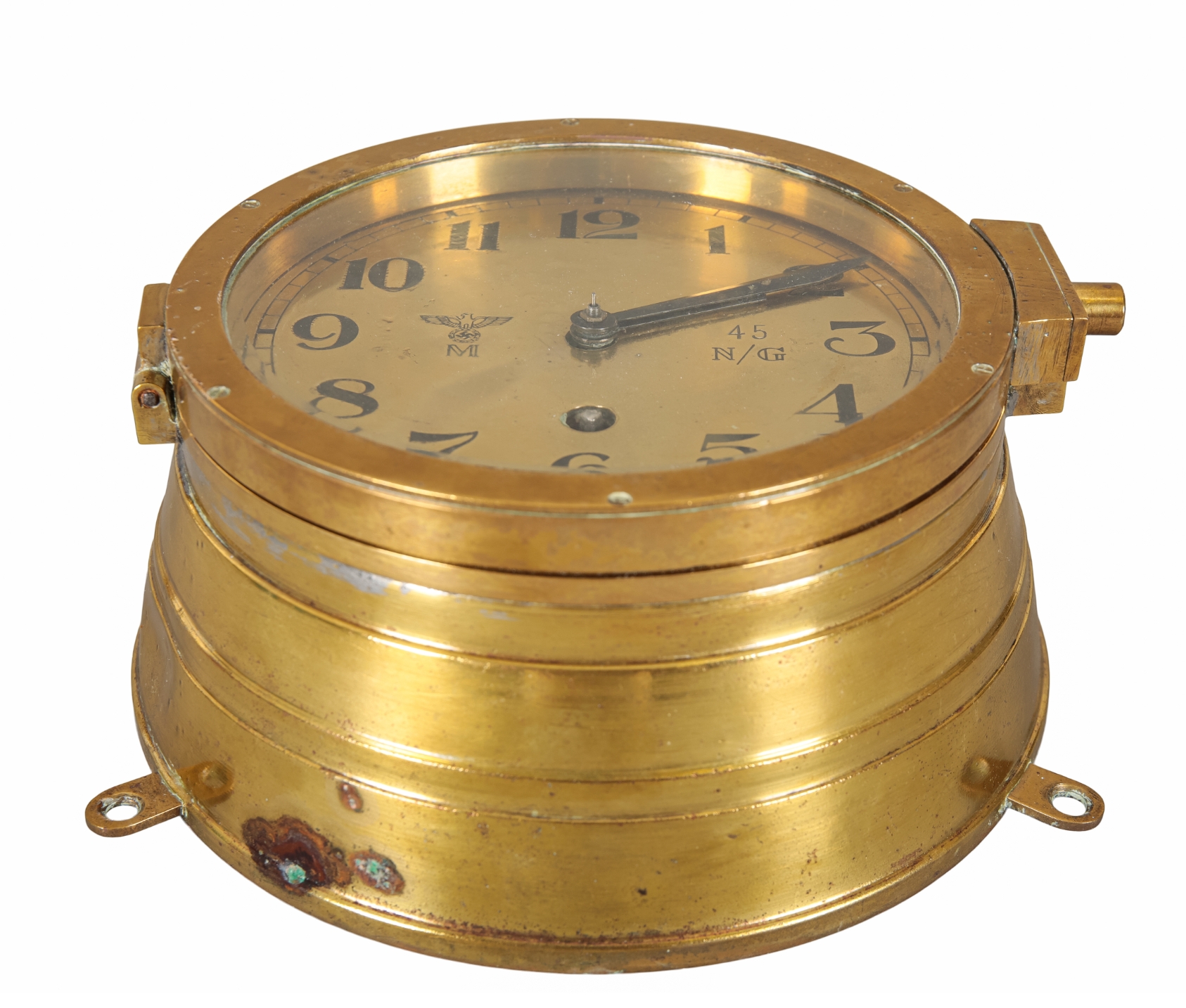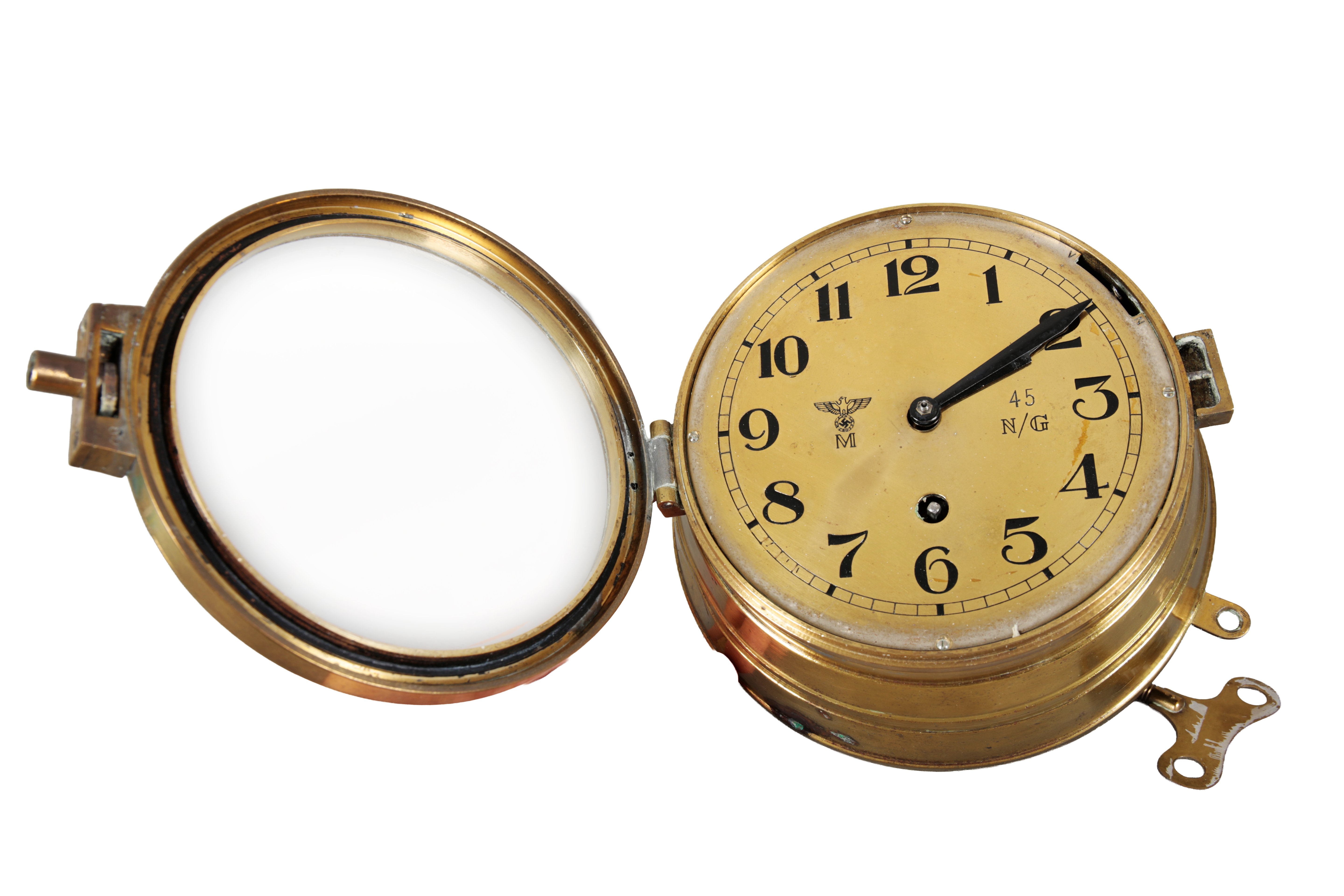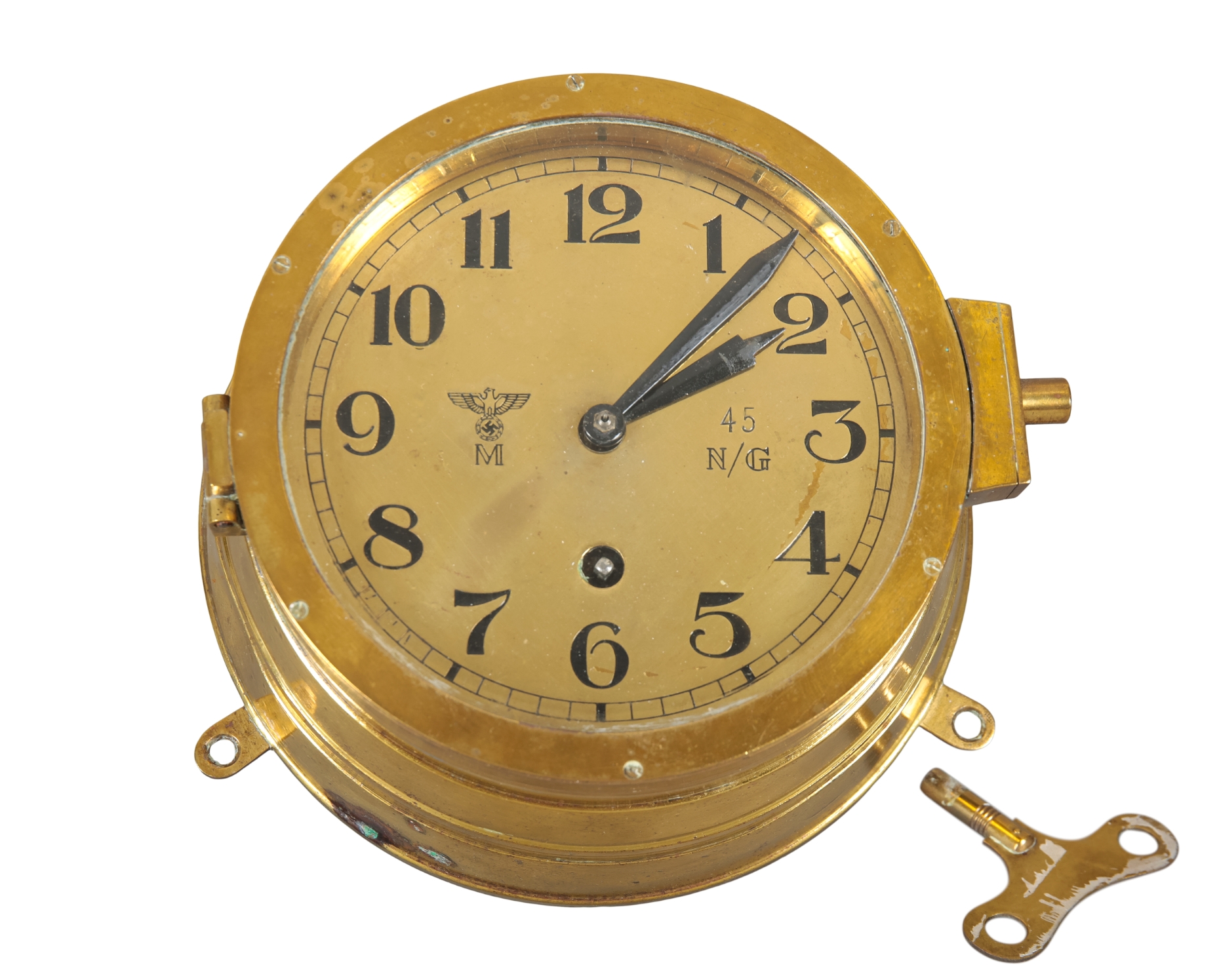 A WWII GERMAN KRIEGSMARINE BRASS BULKHEAD CLOCK