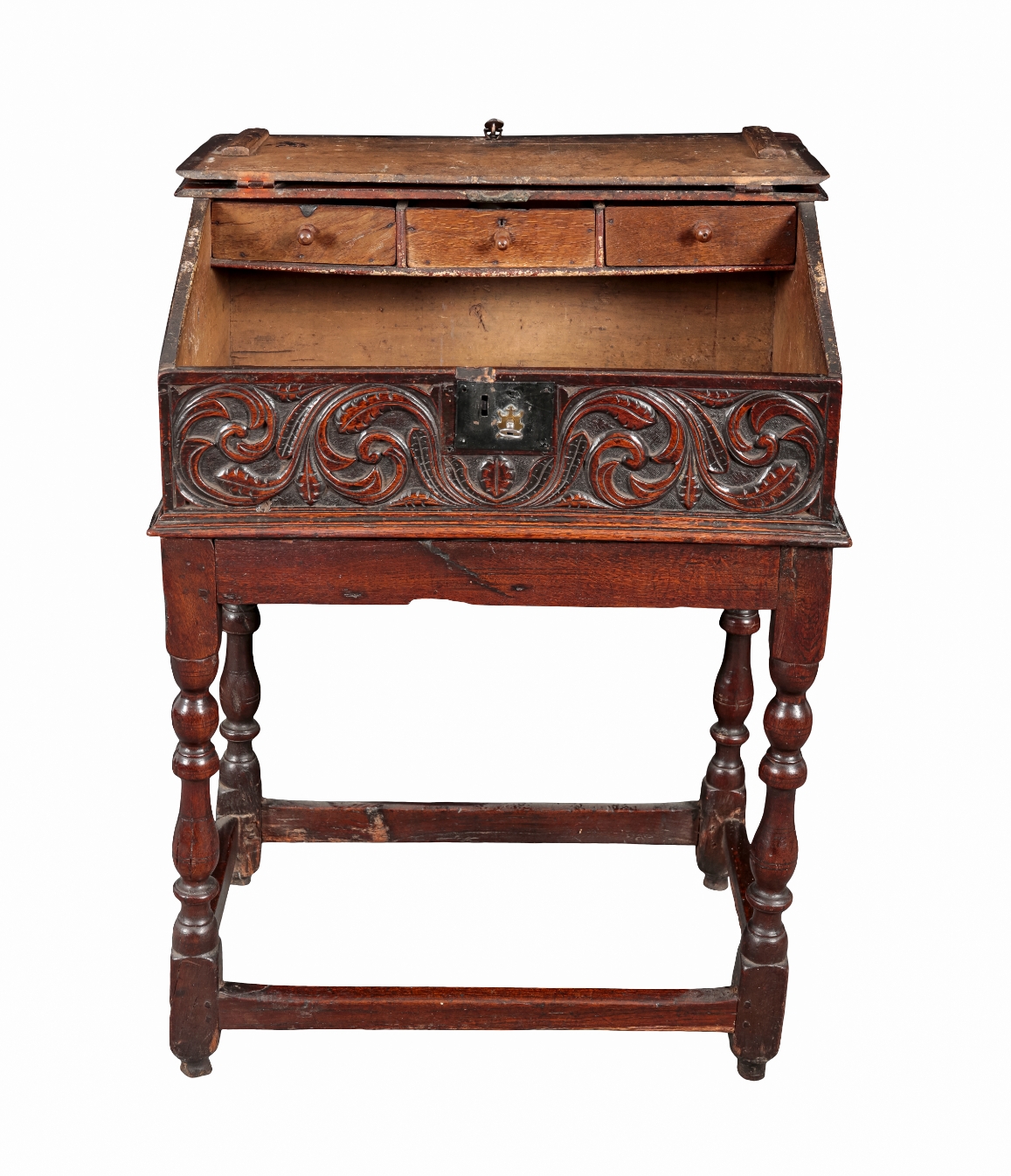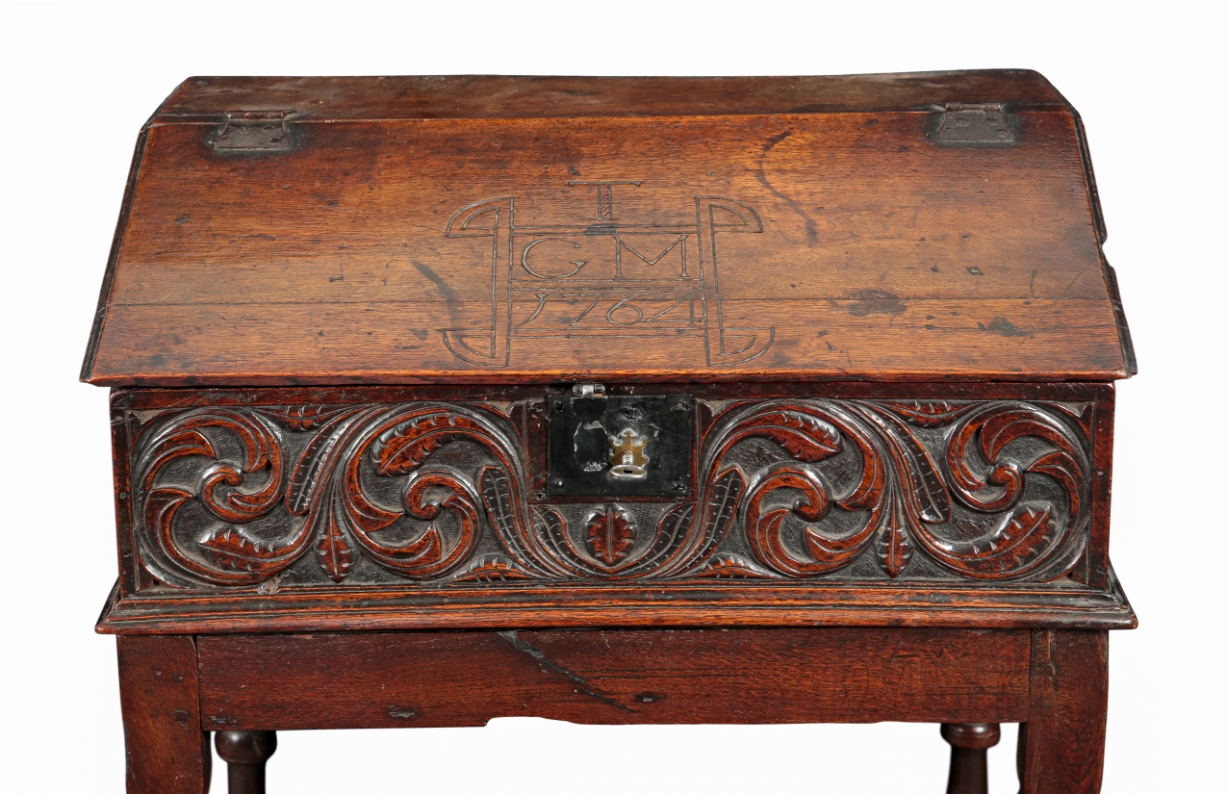 With good colour and appearance this box has signs of wear and use largely appropriate to age and purpose. Surface marks, scratching and small losses noted. Evidence of old worm. The stand and box are likley associated. Chips to feet and restorations to stand.