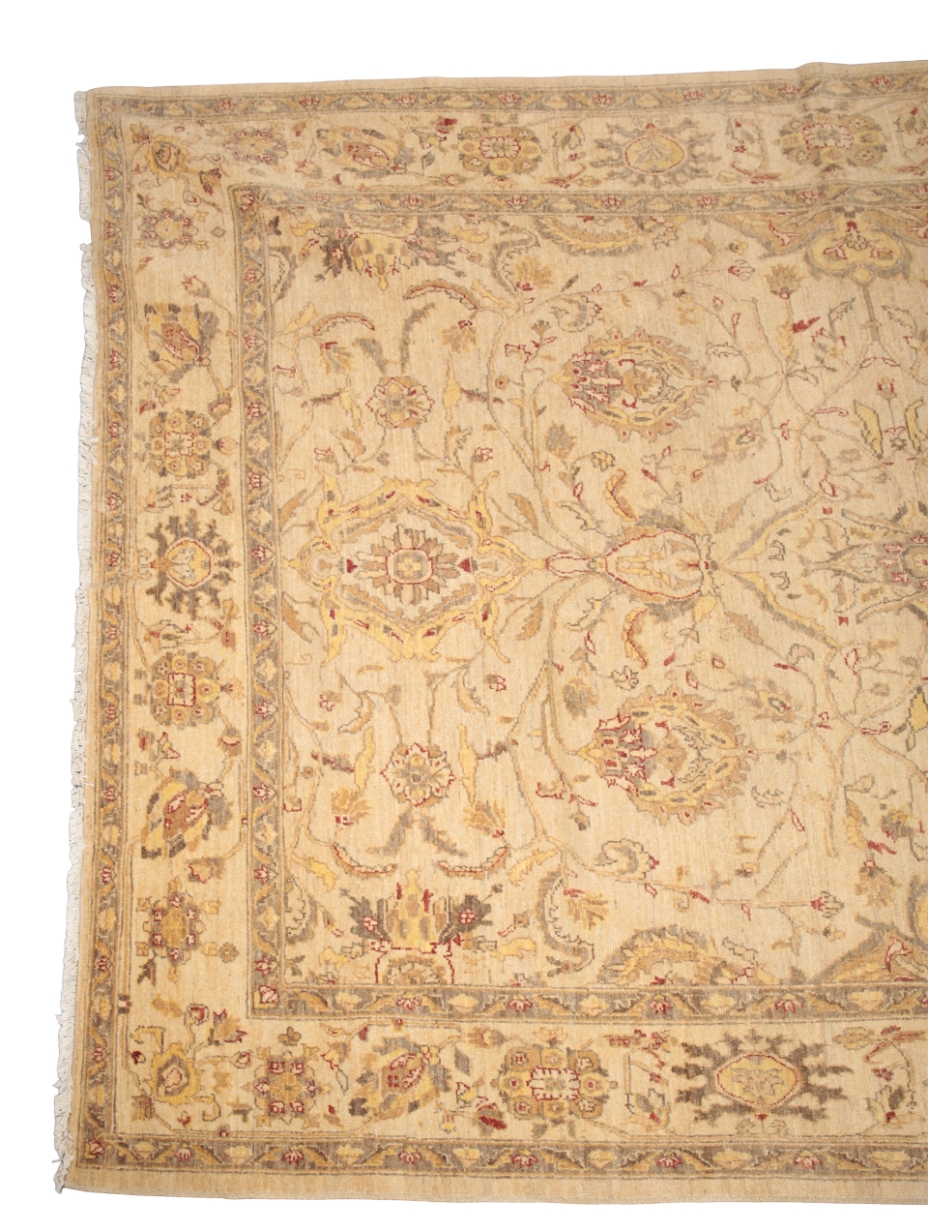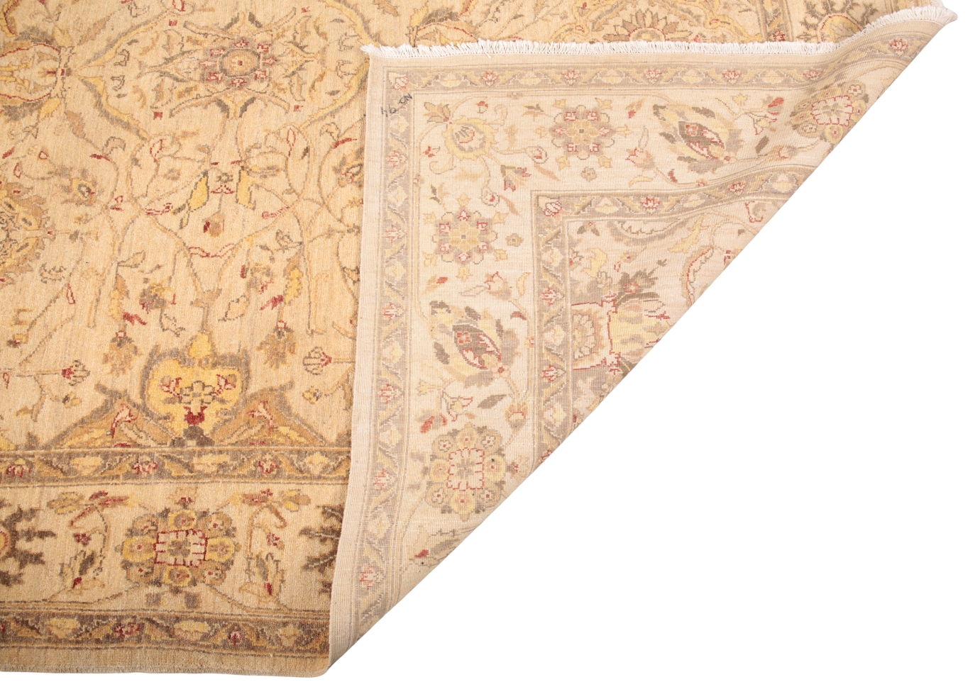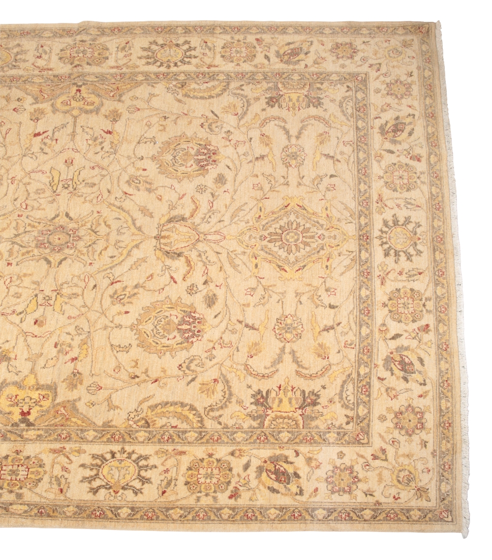 20th century, the gold ground decorated with stylised flora and leafy tendrils, 252cm x 308cm