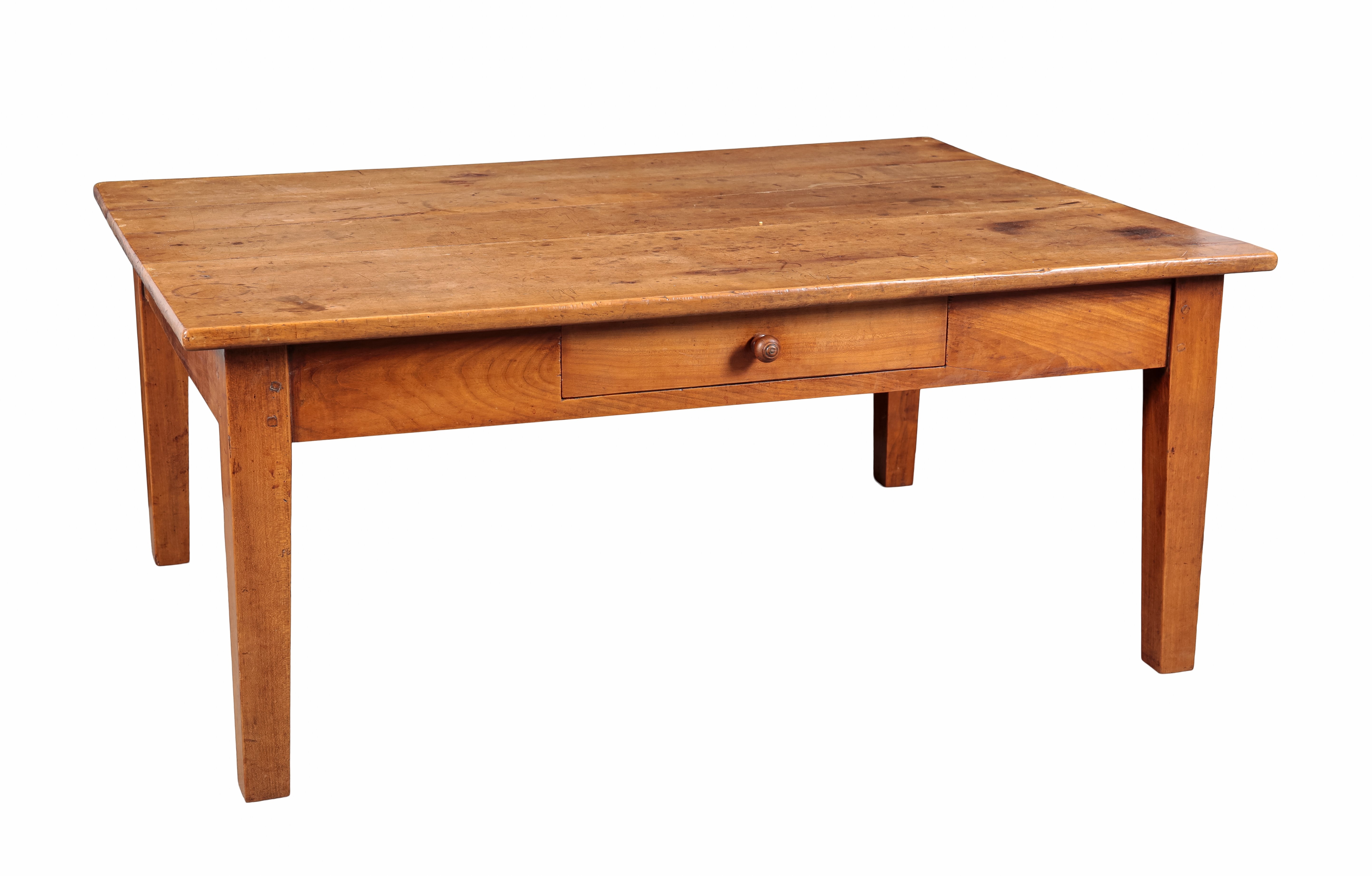 early 20th century, with a single frieze drawer on tapered square legs, 52cm high x 124cm wide x 88cm deep