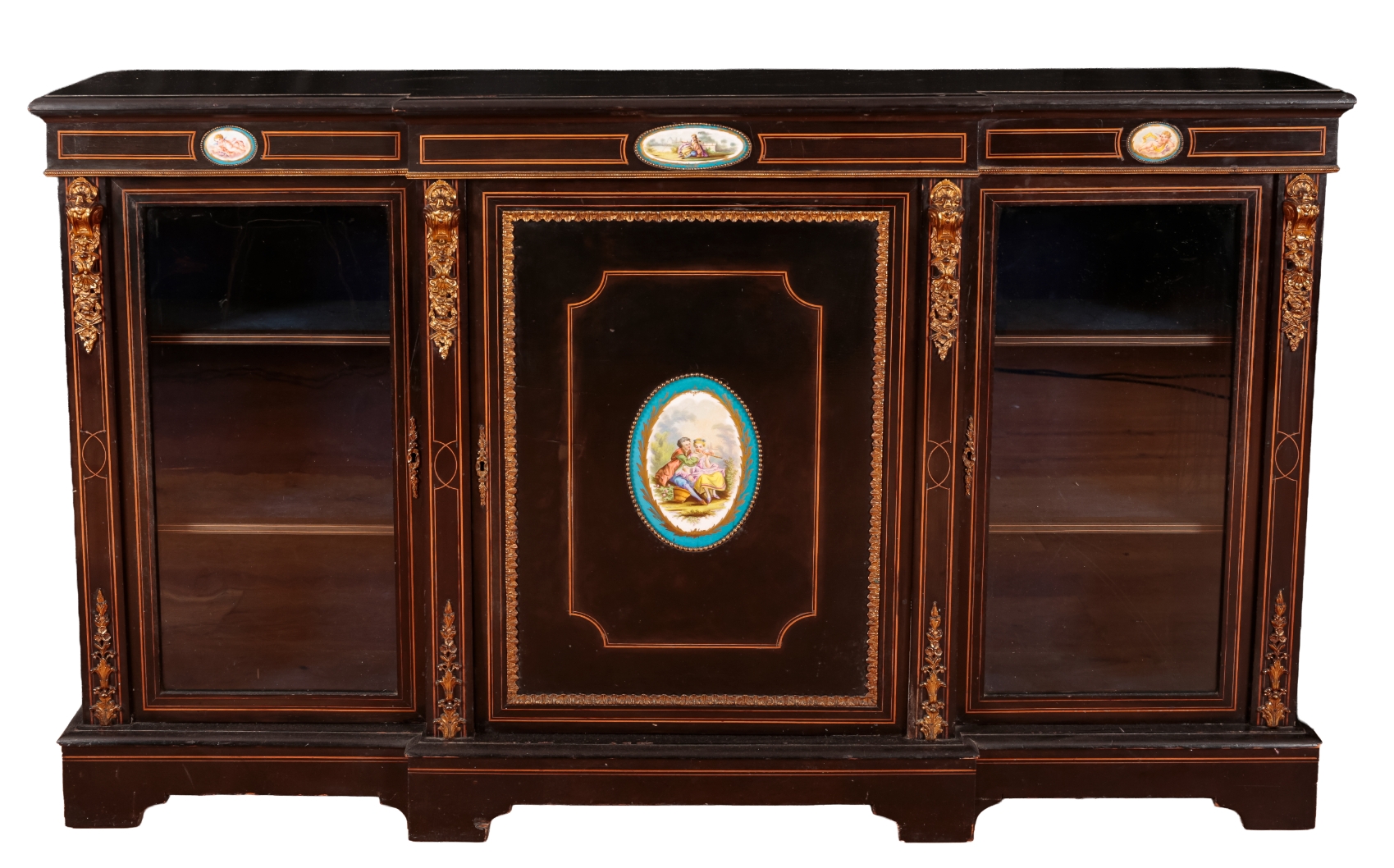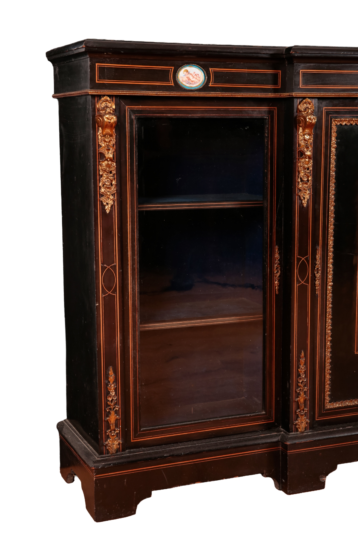 A VICTORIAN EBONISED BREAKFRONT CREDENZA