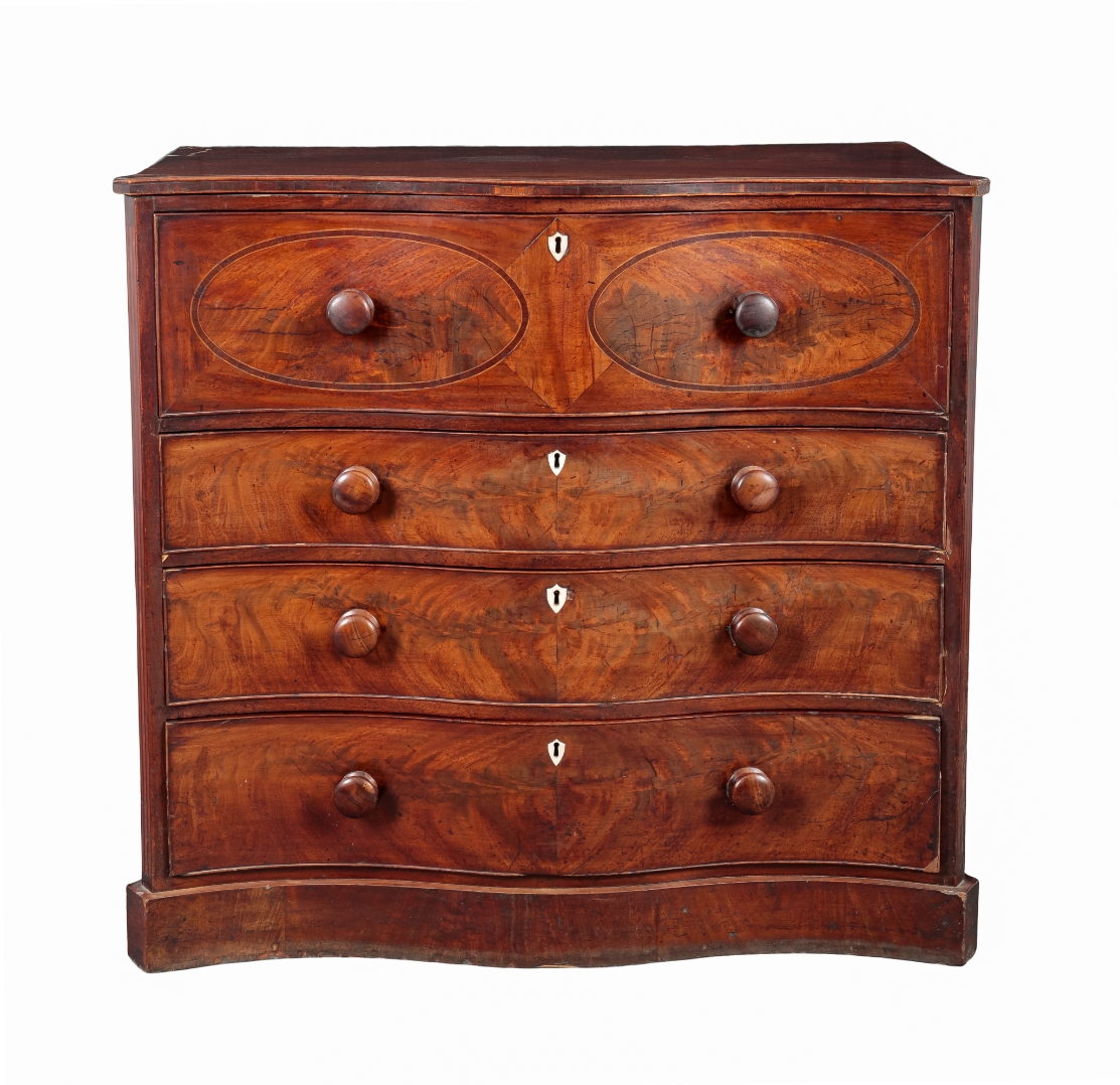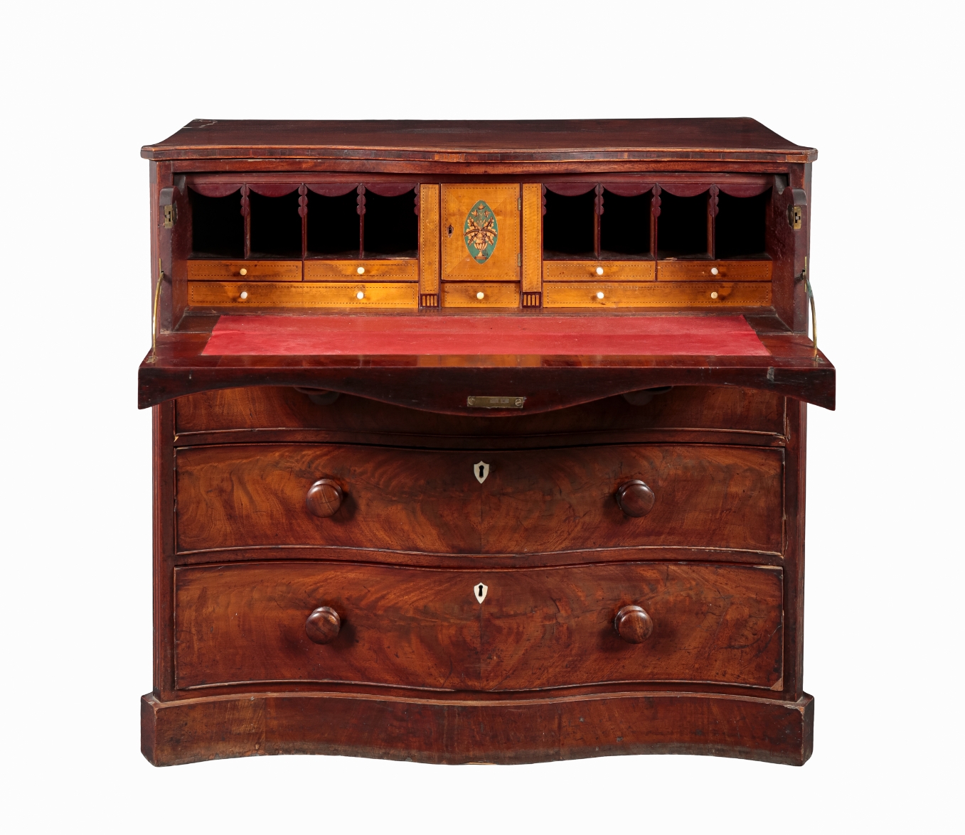 A GEORGE III SERPENTINE SECRETAIRE CHEST OF DRAWERS