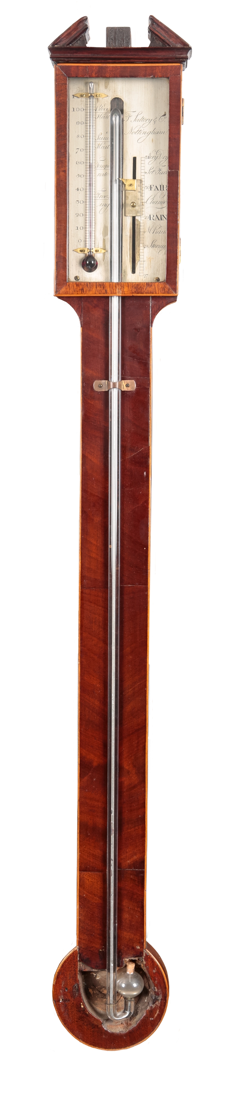 A REGENCY MAHOGANY STICK BAROMETER BY F. SALTERY & CO