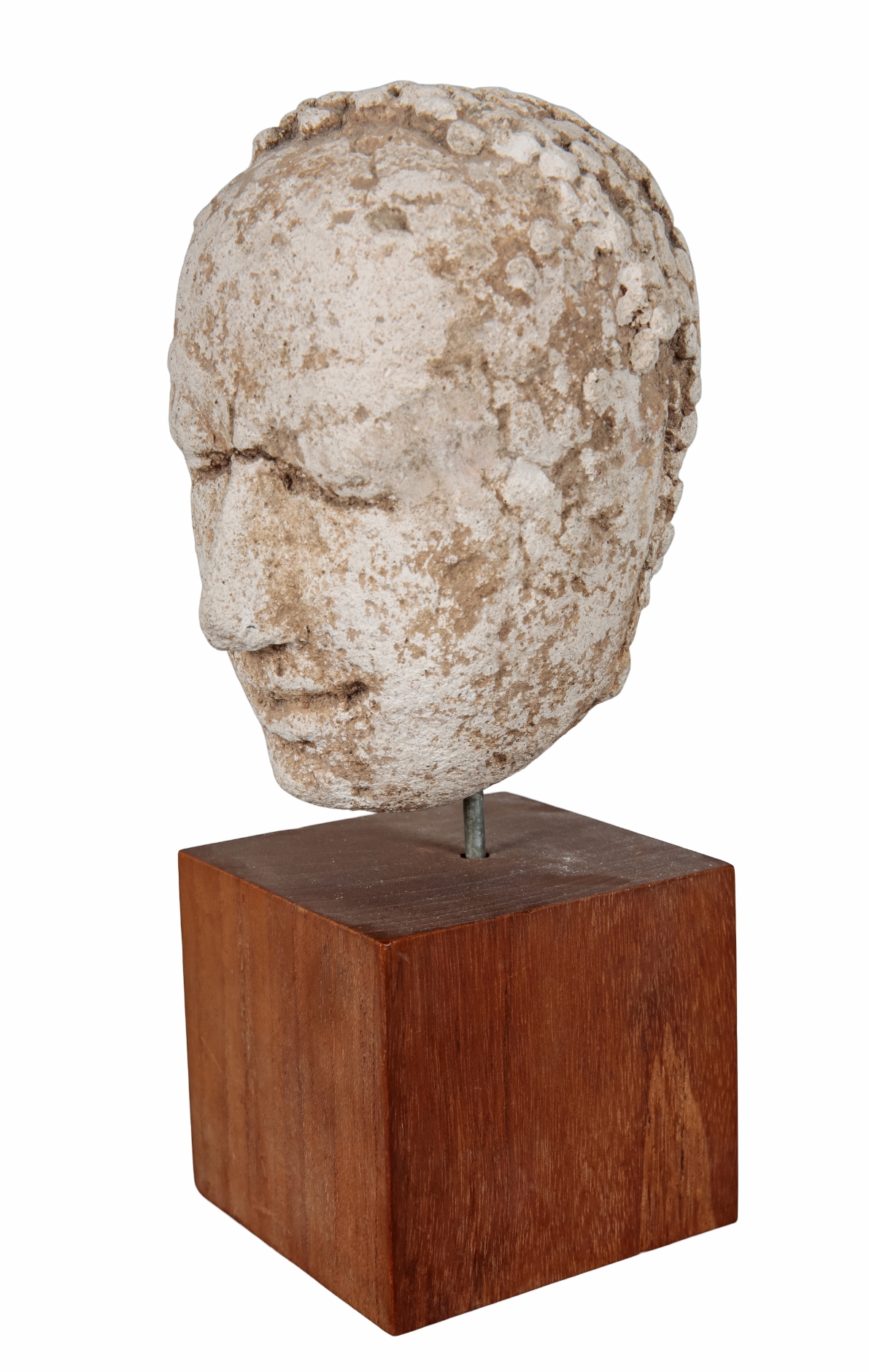 possibly Gandhara, modelled with tightly cropped hair, 13cm high, on a modern wooden stand Provenance: A private West Country Collection.