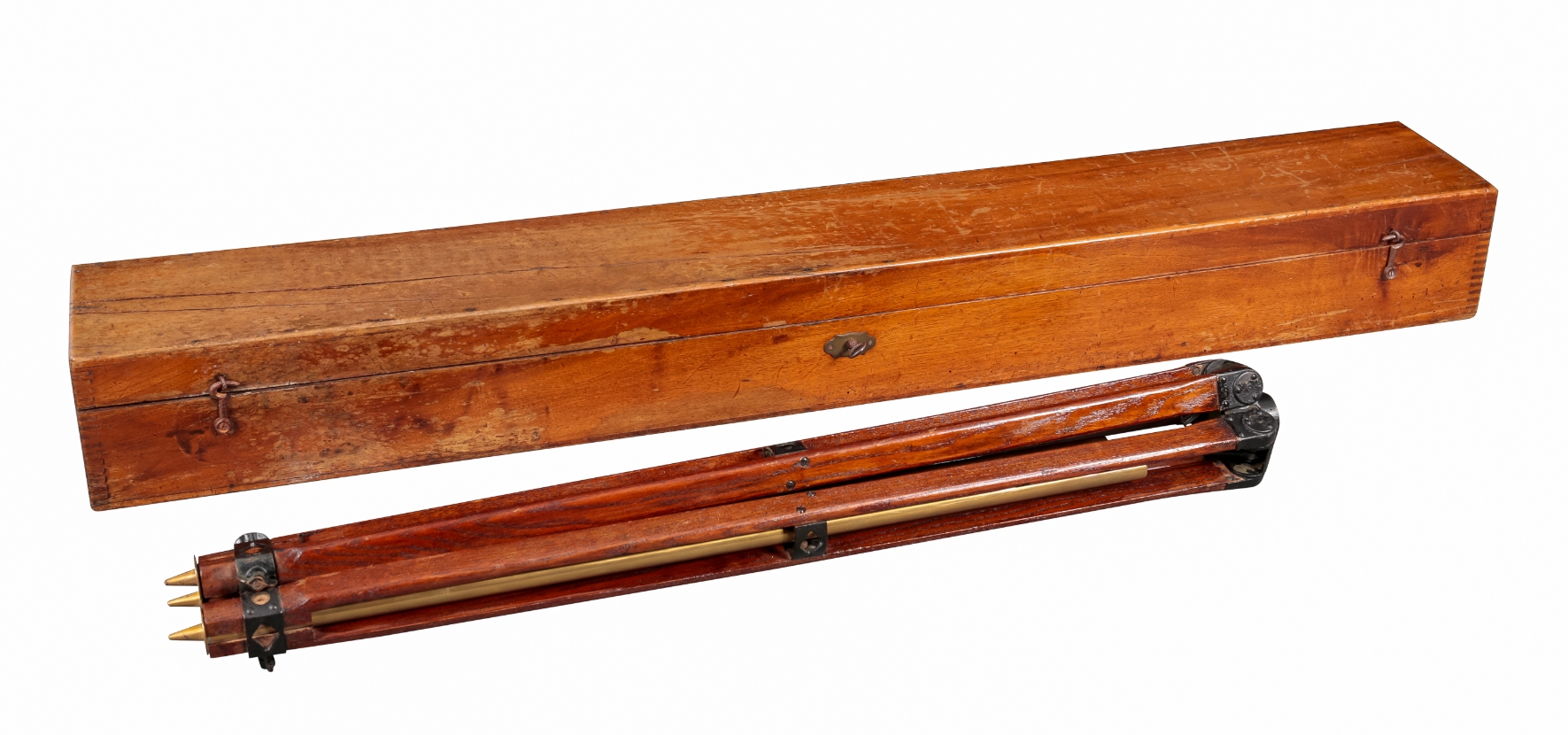 20th century, 122cm long, in a fitted wooden case, with an adjustable tripod stand (2)