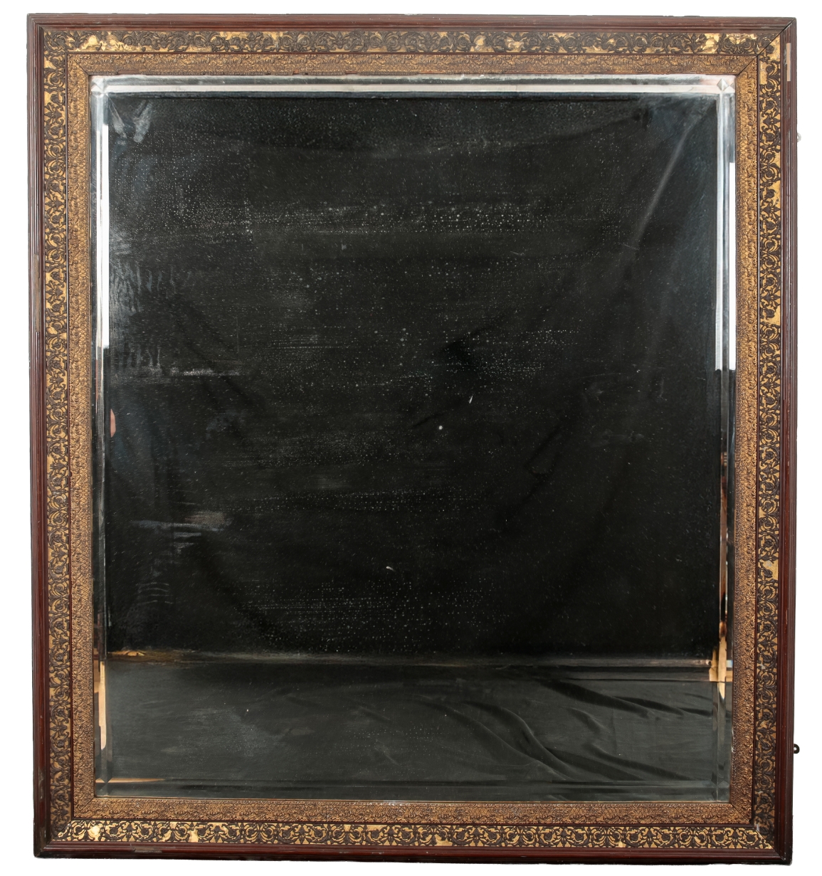 20th century, the rectangular bevelled plate within a moulded and parcel gilt surround, 145cm high x 160cm wide