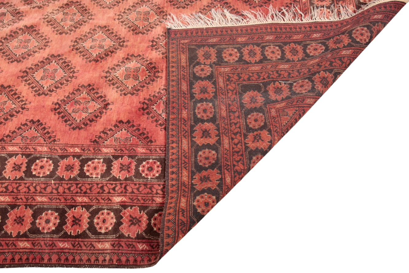 20th century, the madder ground decorated with repeating geometric medallions, 200cm x 288cm