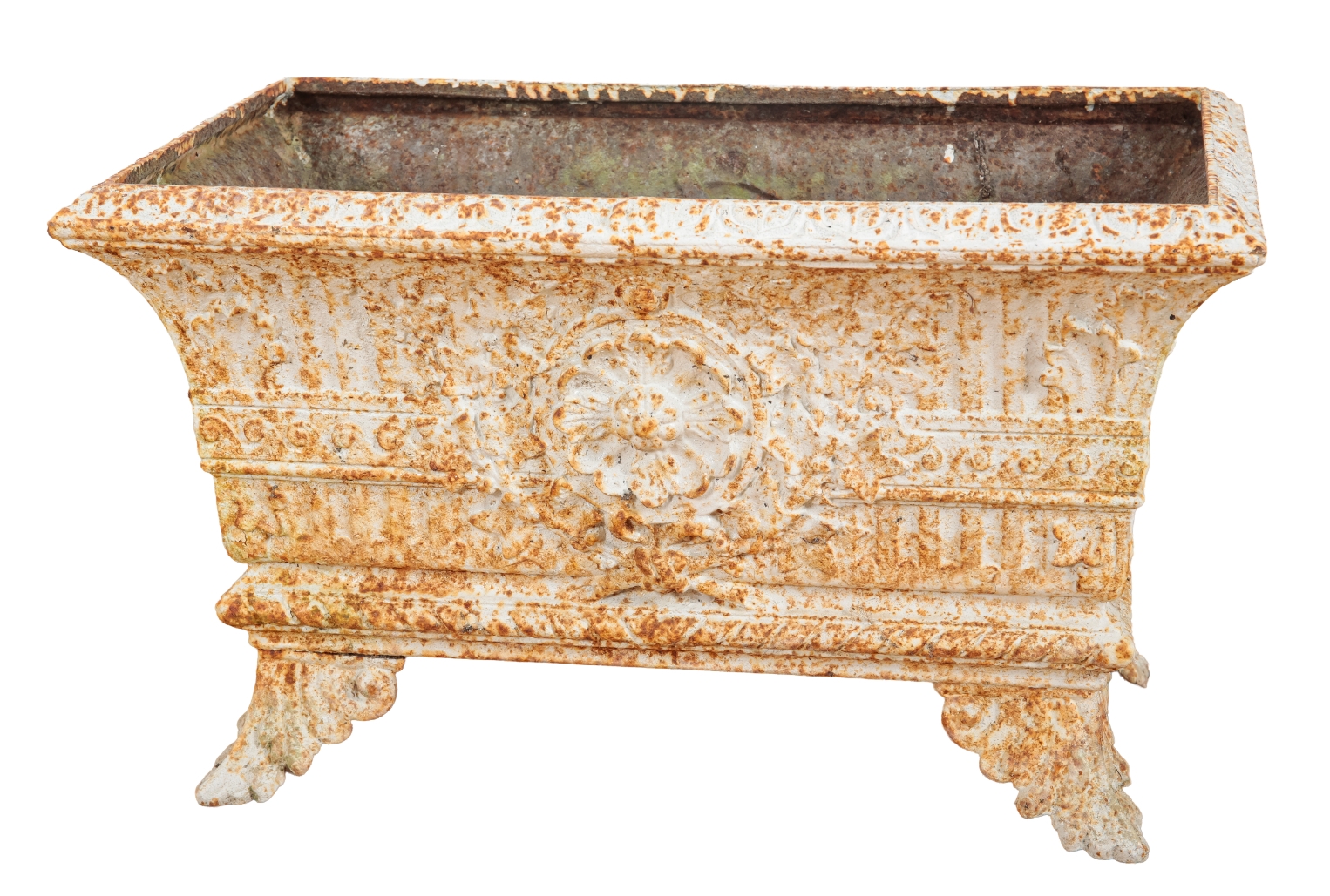 A PAIR OF WHITE PAINTED CAST IRON PLANTERS
