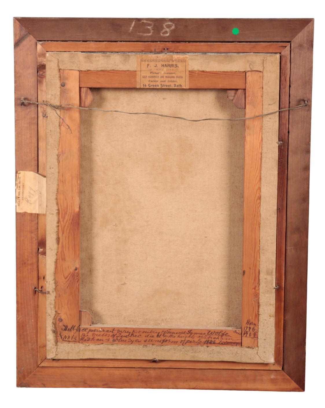 said to be Major-General James Wolfe (1727-1759), bust-length, in uniform, inscribed verso, oil on canvas, 48cm x 35.5cm