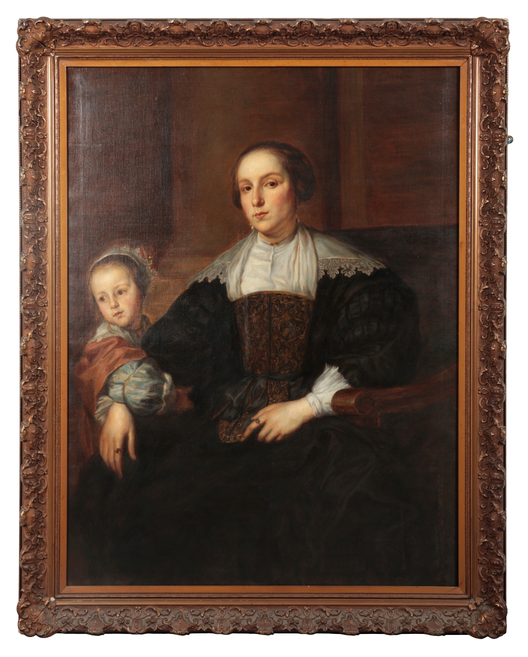 wife of the painter Theodoor Rombouts, with their daughter, after Anthony van Dyck, oil on canvas, 117cm x 89cm