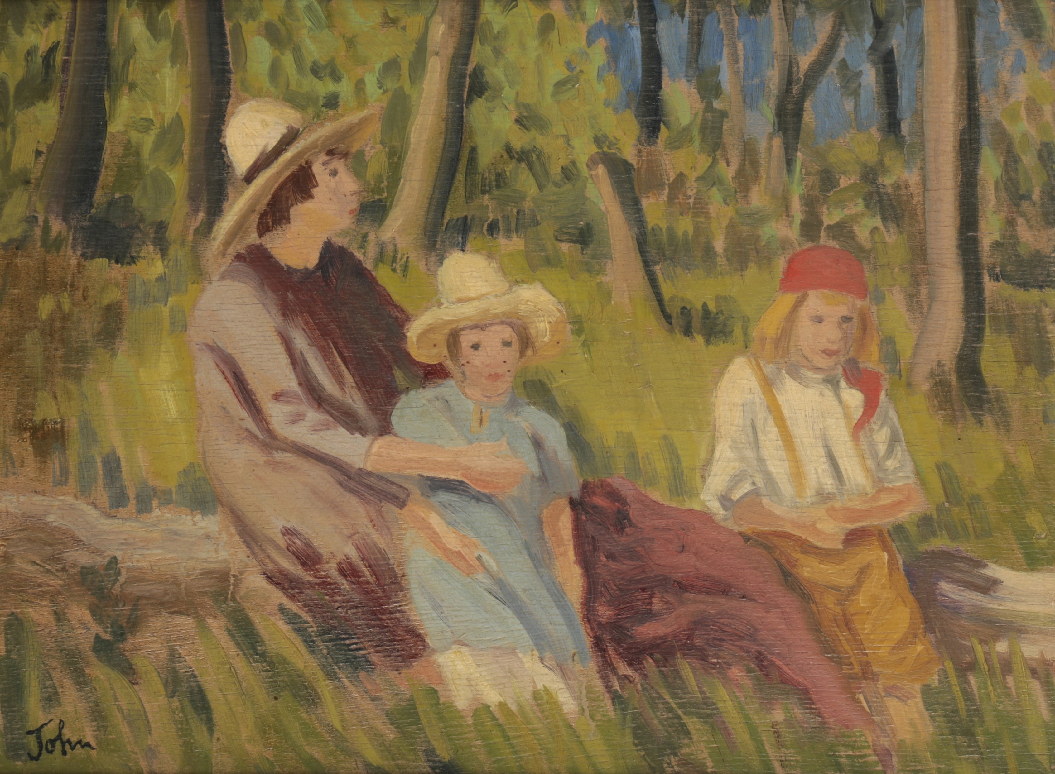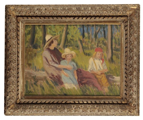 A similar composition, ‘The Fairy Tale’, was sold at Christie’s, London in December 2012 (lot 263), achieving a hammer price of £32,000. This work featured the same three boys and woodland setting, but with the addition of a woman seated between the two younger children. It is believed this woman is Euphemia Lamb (née Nina Forrest), the wife of the artist Henry Lamb.