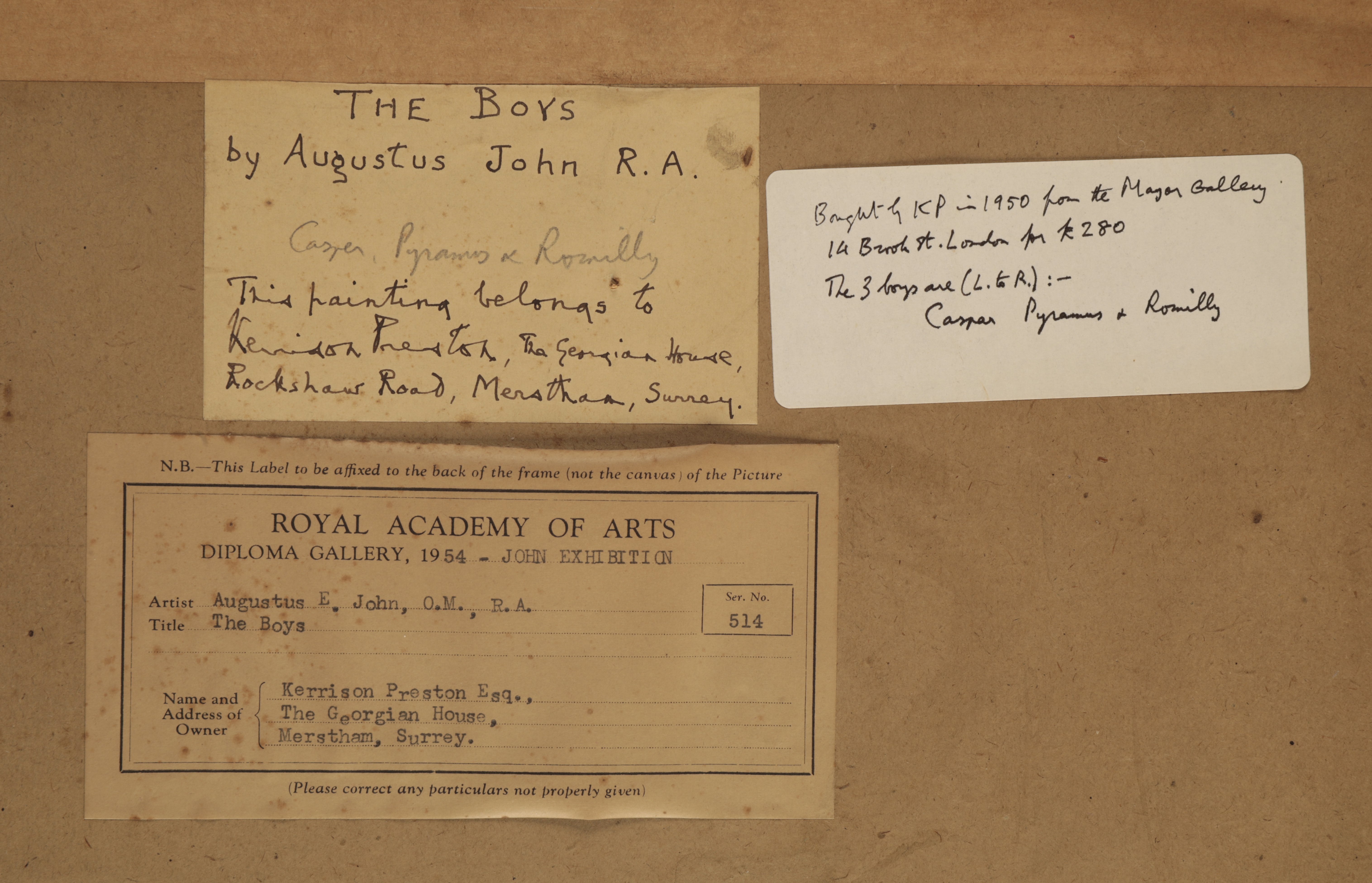 Exhibited: ‘Works by Augustus John’, The Diploma Gallery, The Royal Academy of Arts, 1954, no. 514.