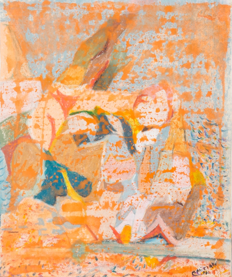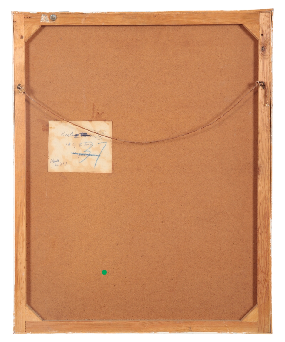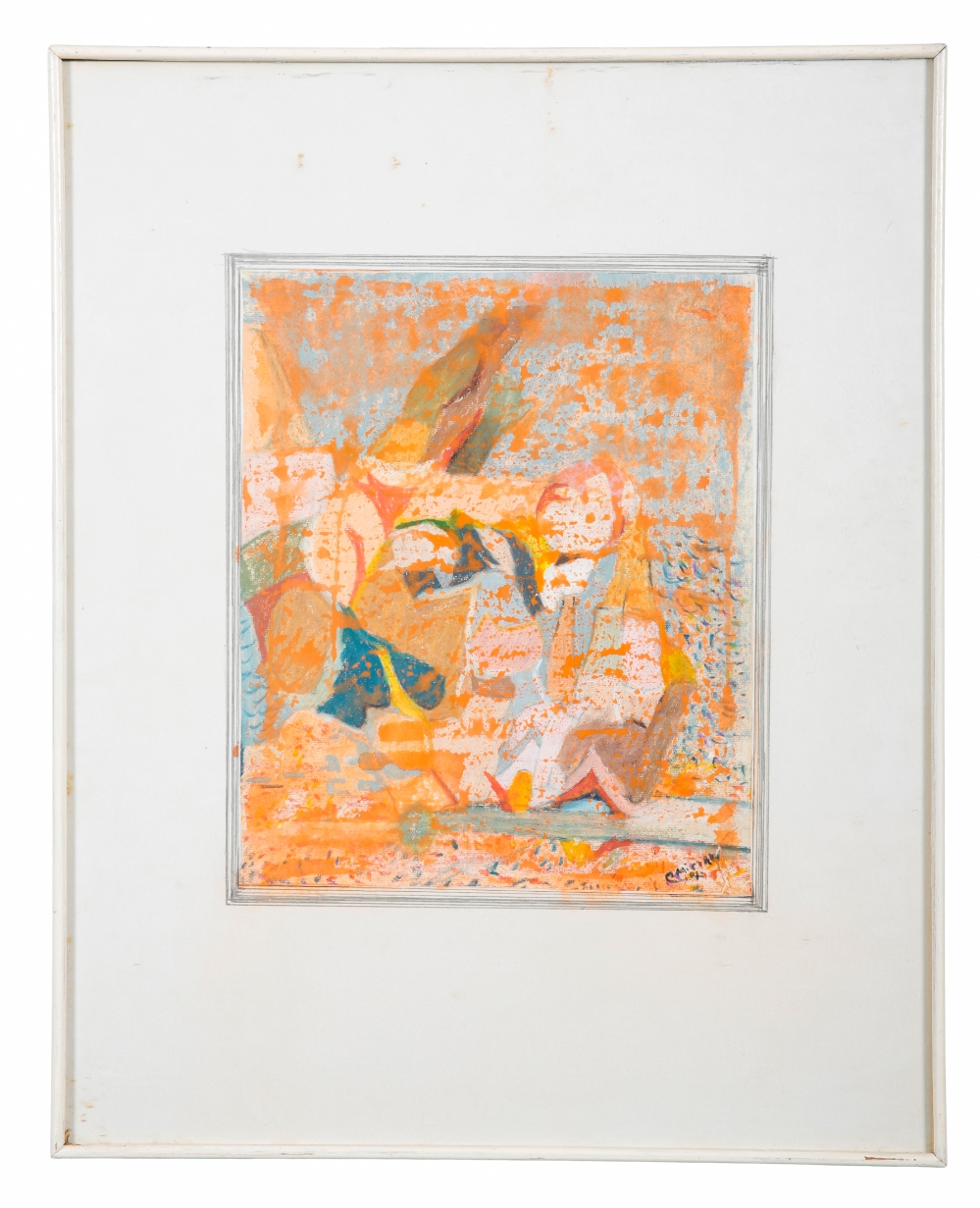signed lower right, gouache and mixed media on paper, 35cm x 30cm