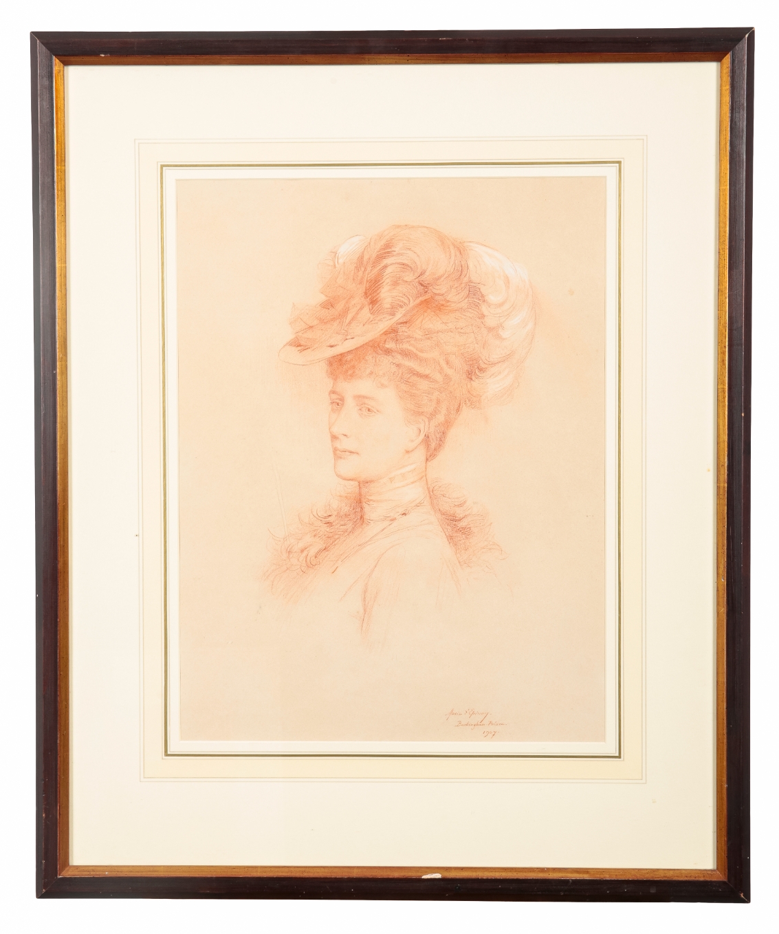 1907, signed and dated lower right and inscribed 'Buckingham Palace', red and white chalks on paper, 48cm x 36cm