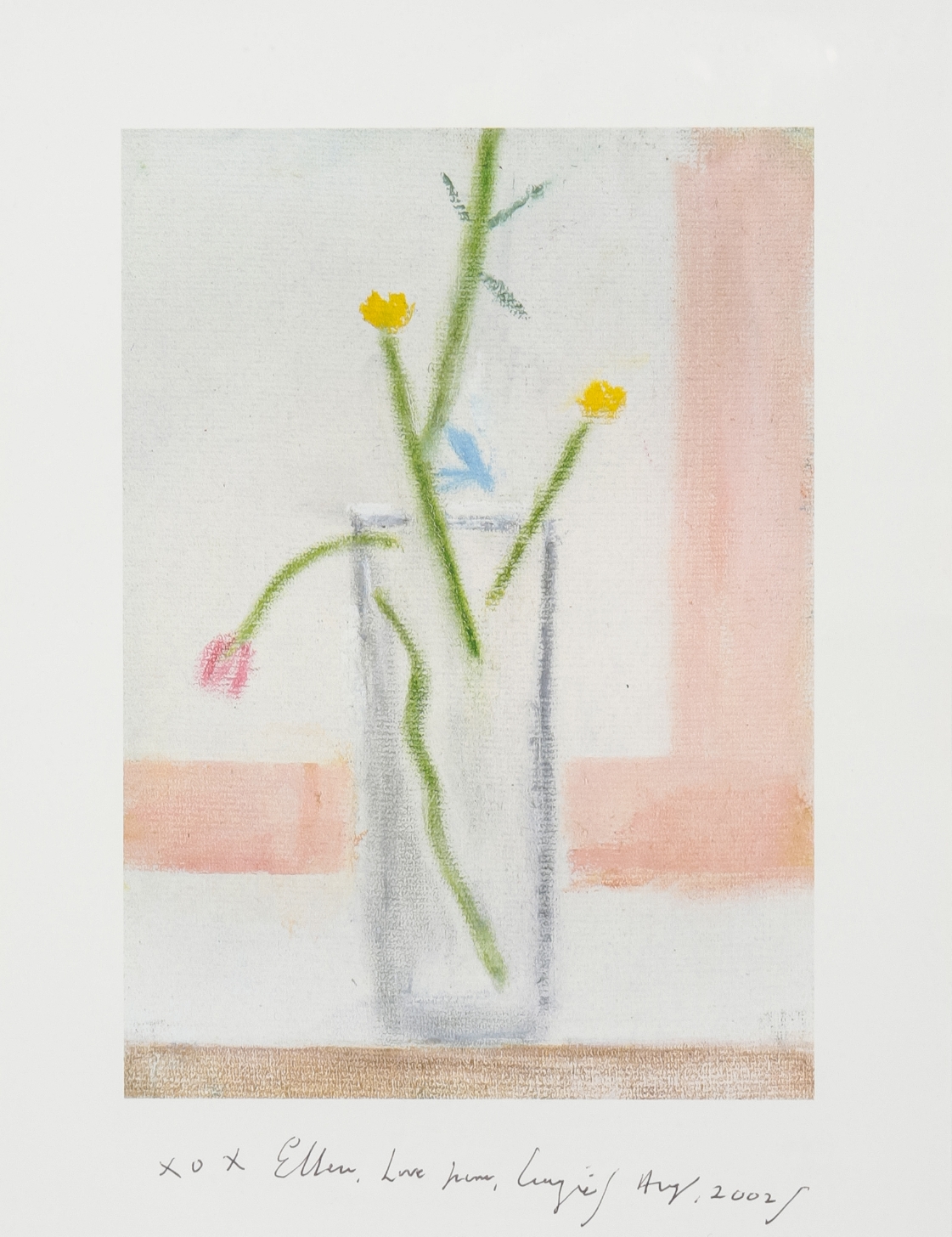 signed and dedicated to margin, lithograph in colours, 17.5cm x 12.5cm