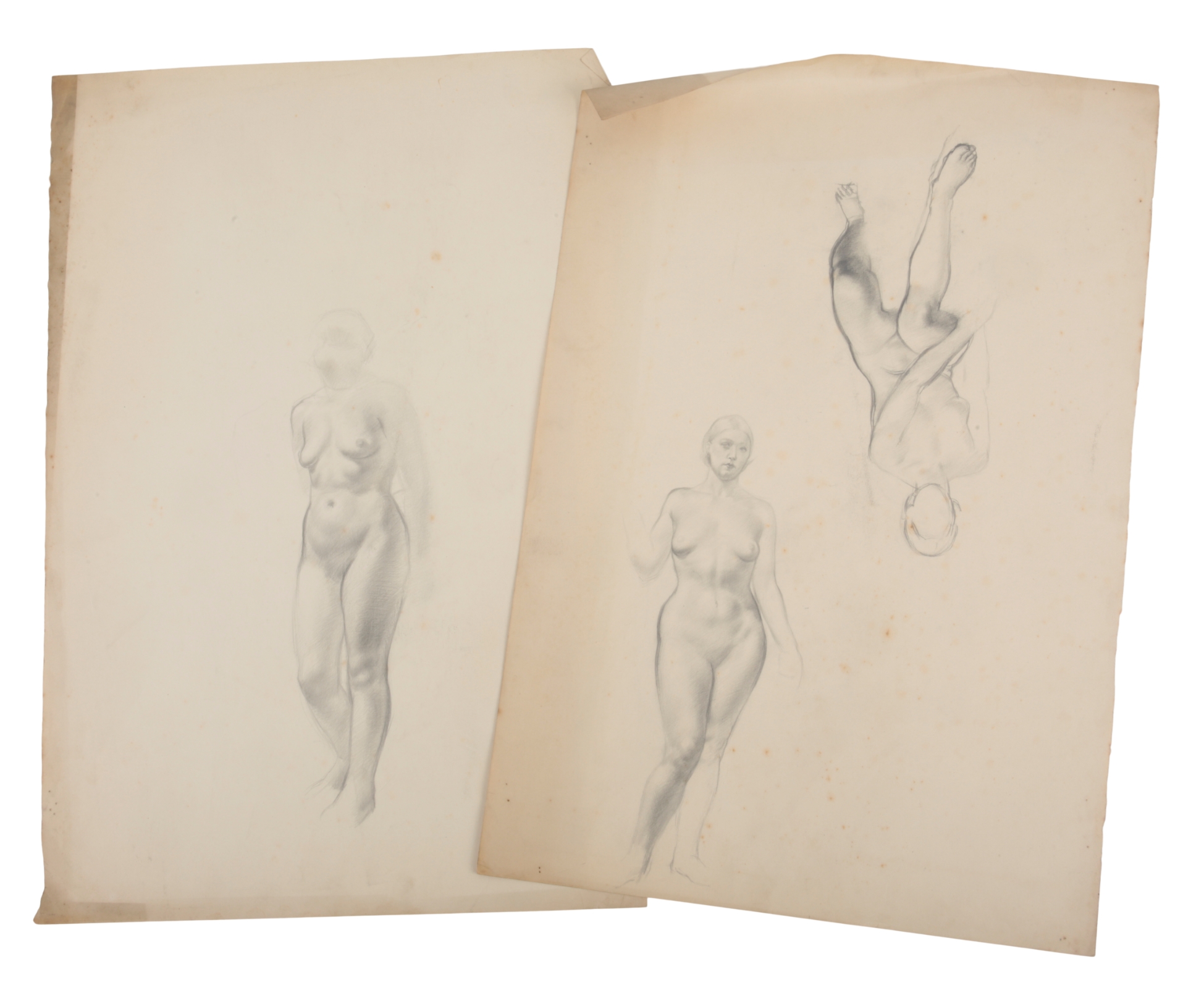 mainly nude and figure studies in pencil, crayon and other mixed media, typically 35cm x 17cm; together with miscellaneous works (a lot)