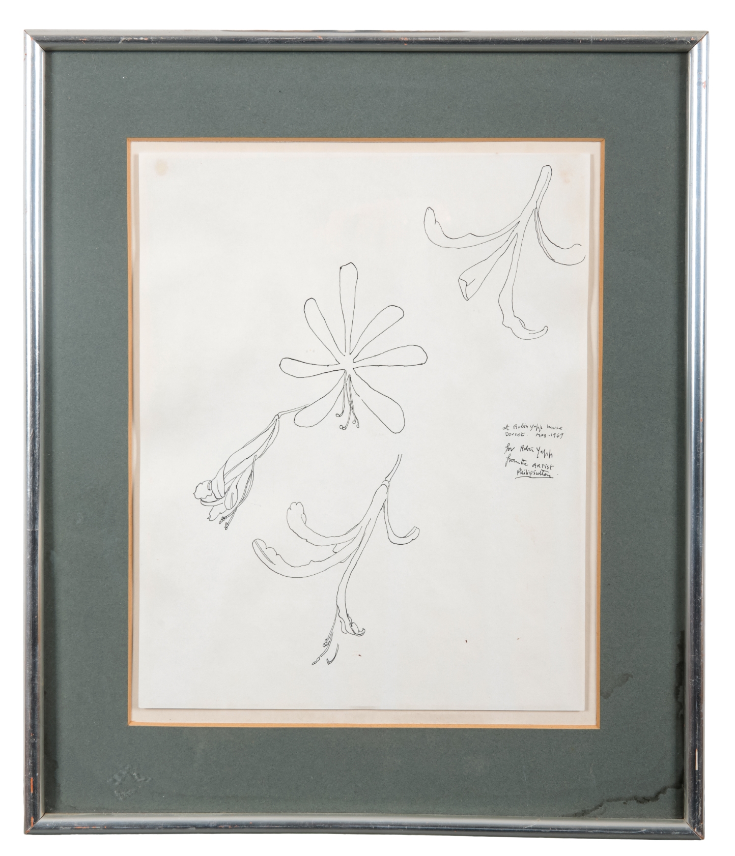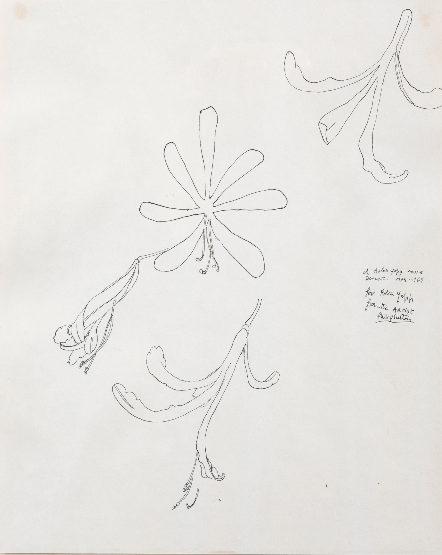 1969, signed, dated and dedicated middle right, pen and ink on paper, 28cm x 22.5cm