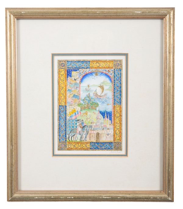 signed lower right, watercolour with gilt, 14.5cm x 10cm
