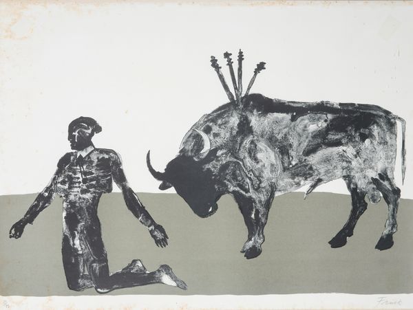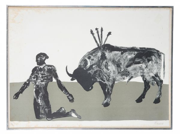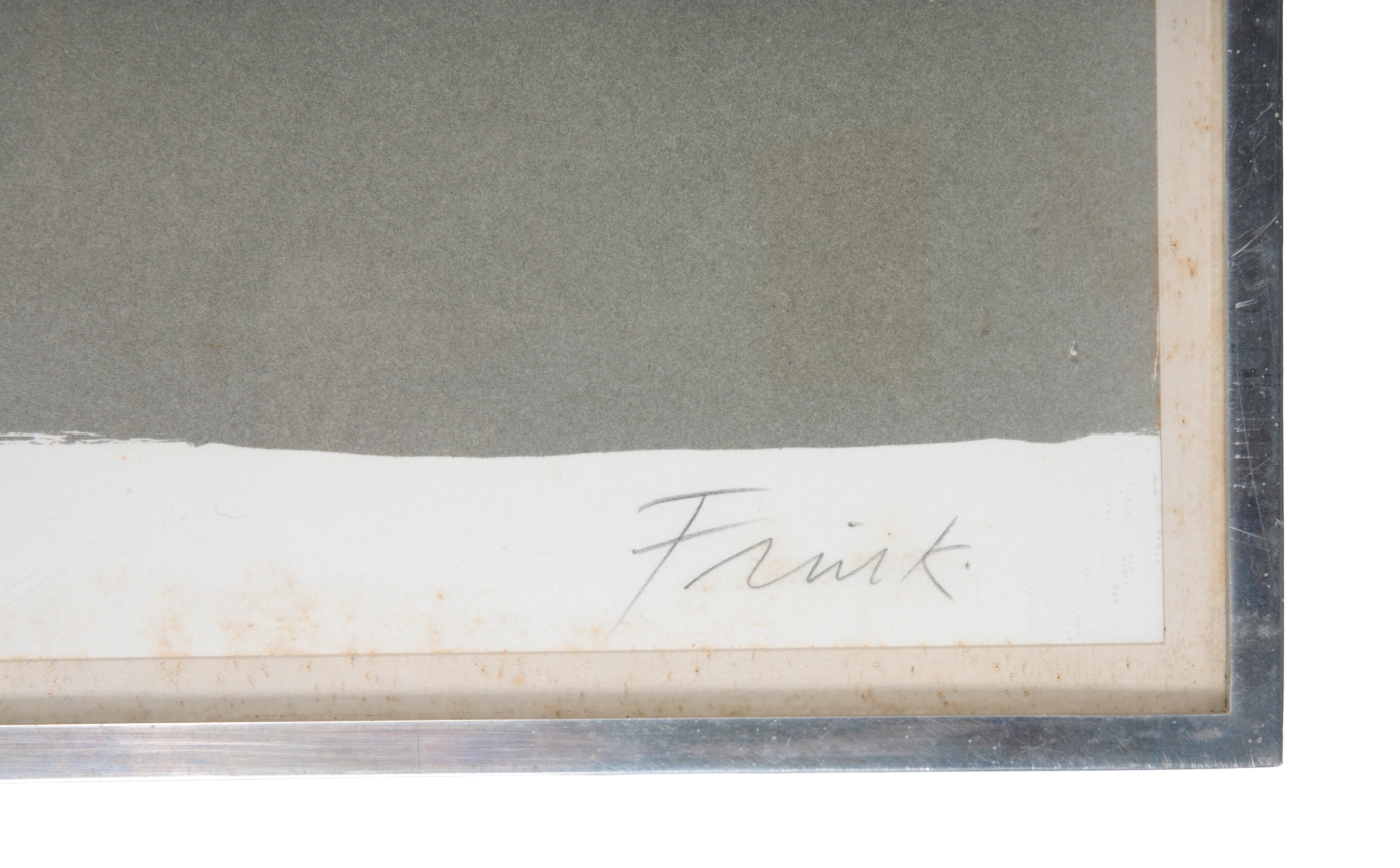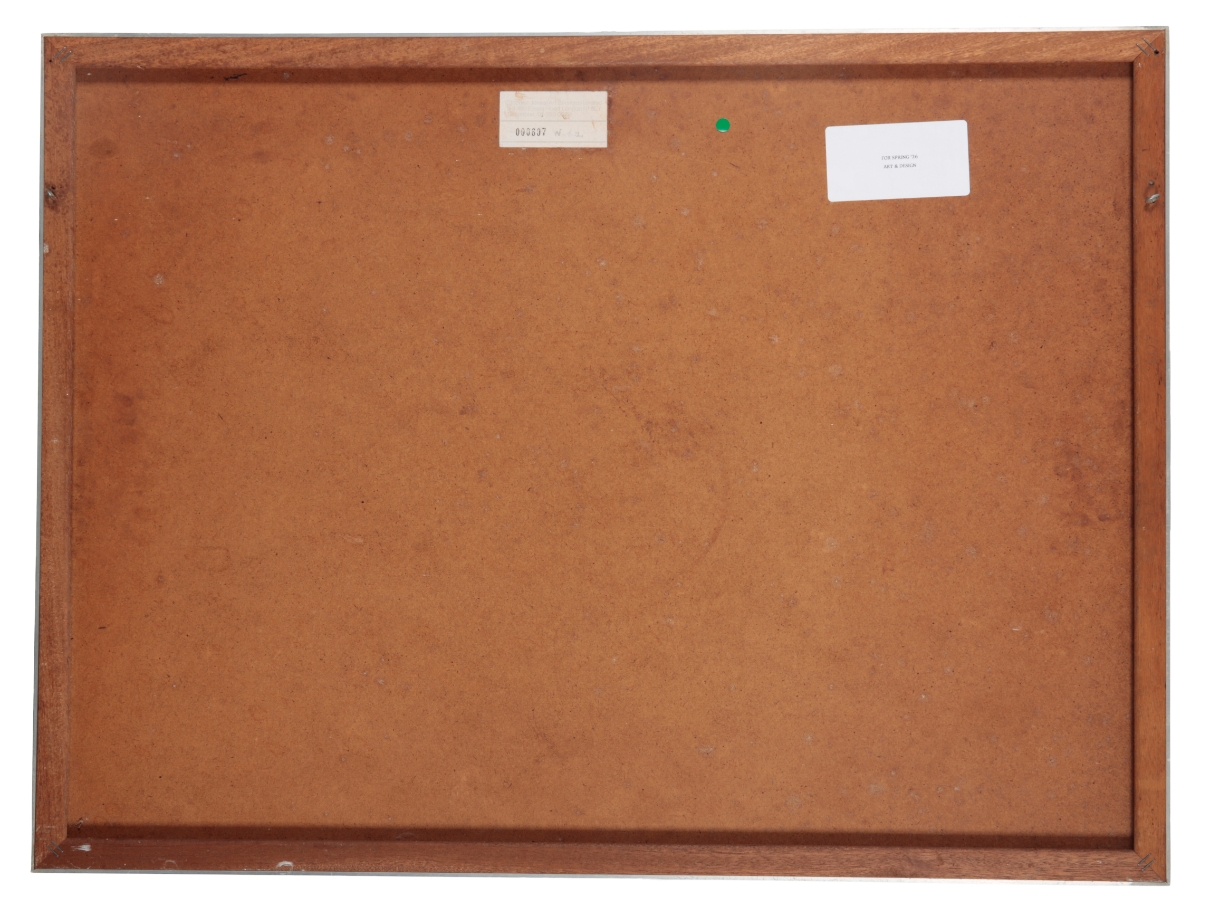 The artwork is in fair overall condition, showing signs of age and handling. Foxing and staining are present, particularly around the edges of the paper and on the right-hand side. The frame shows some minor damage and wear; both the frame and glazing could benefit from cleaning. The frame remains structurally sound, and the piece retains its charm and aesthetic appeal. Additional photographs are available upon request.