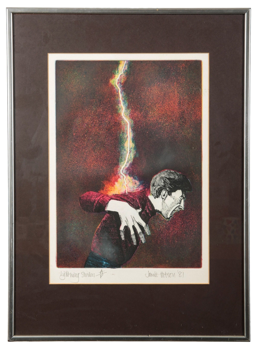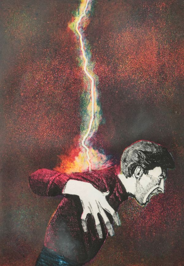 (19)81, signed in pencil to margin, etching in colours, 35cm x 24cm