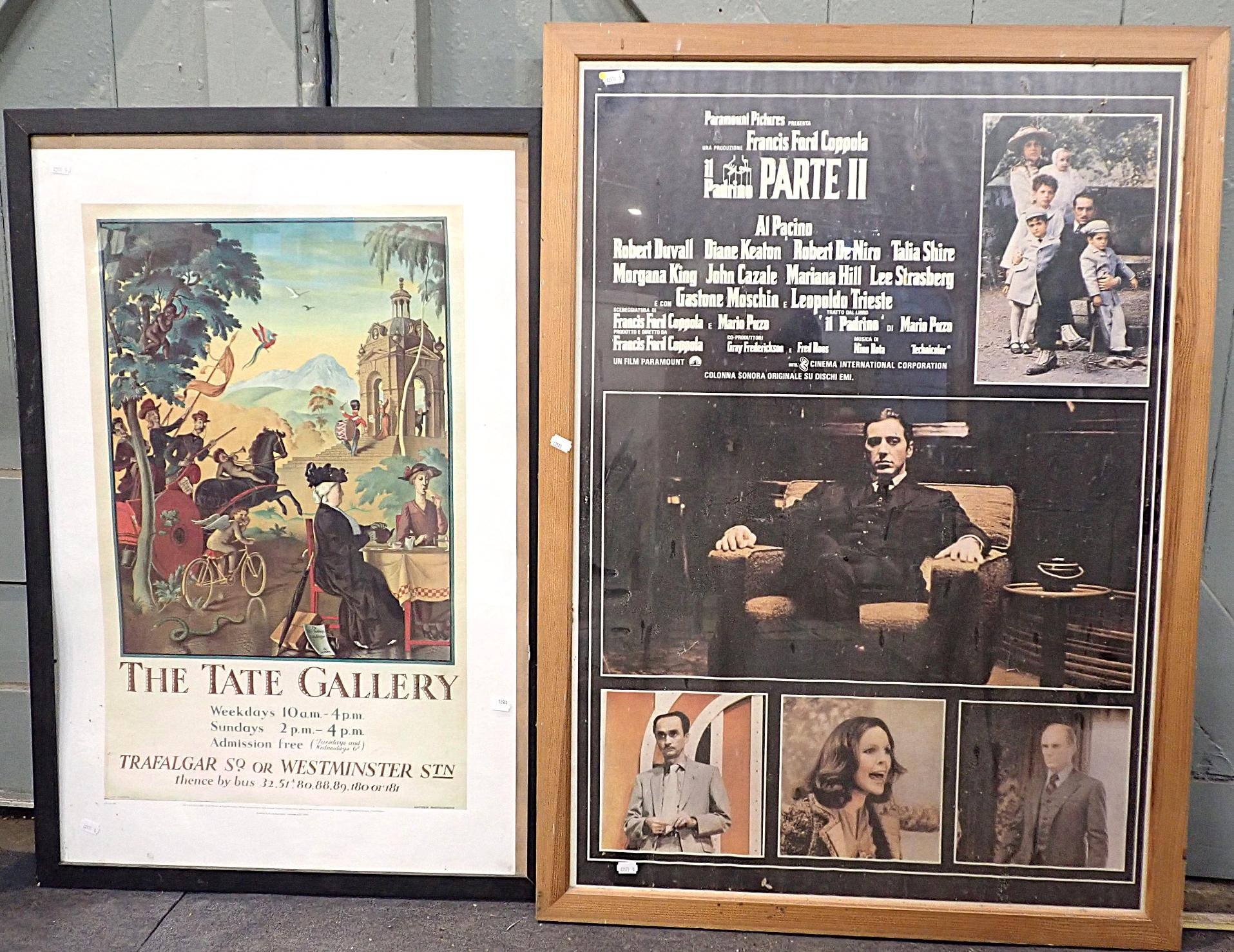 (The Godfather II), and a reproduction London Regional Transport poster 'The Tate Gallery' by Rex Whistler, both framed with perspex glazing (2)