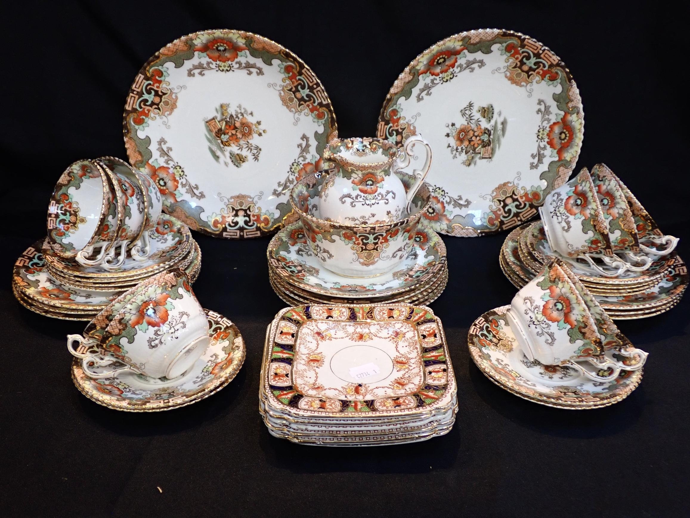 transfer printed, painted and gilt (10 cups), and six later tea plates
