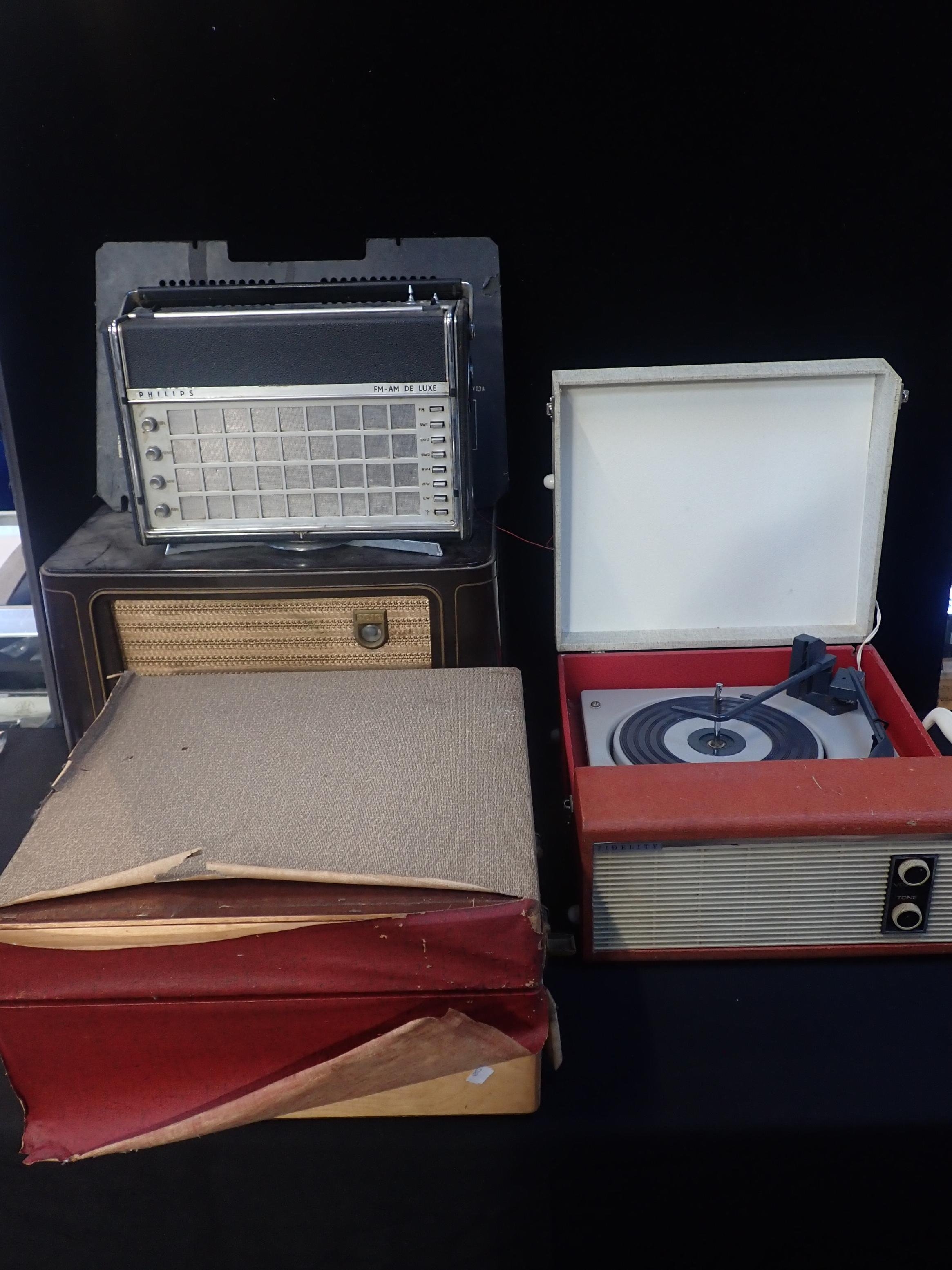 With a 'Grundig 2010' radio, Philip 'FM-AM De Luxe' radio and a reel to reel tape unit. (4) (all untested)