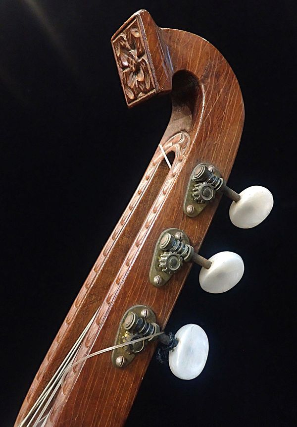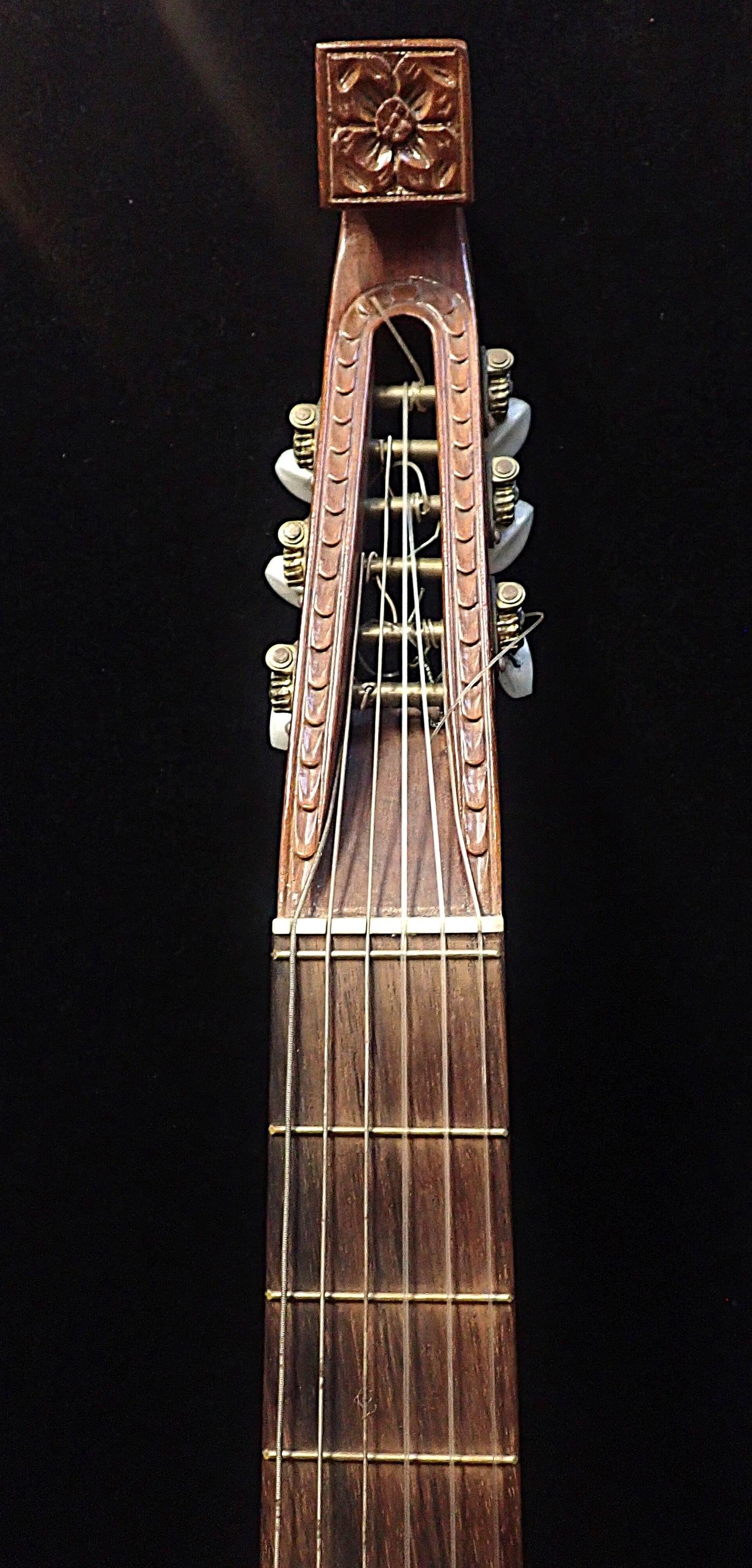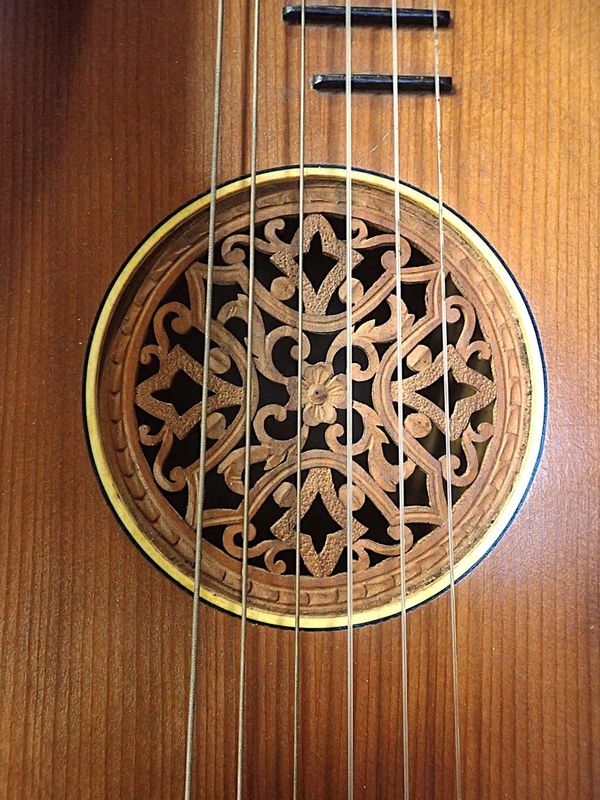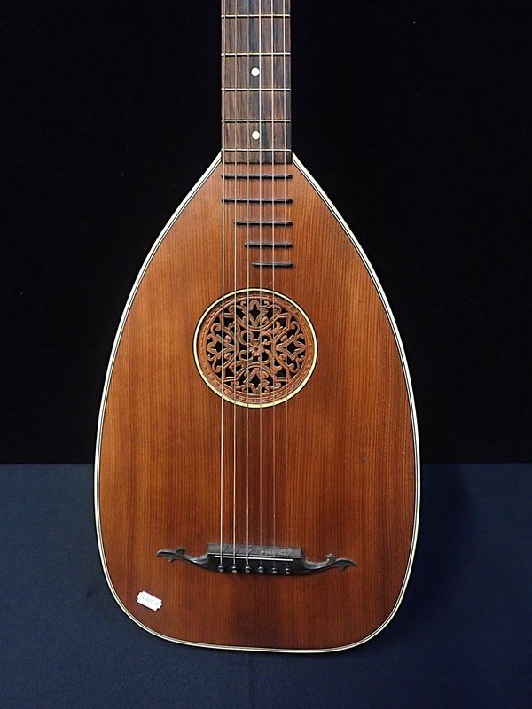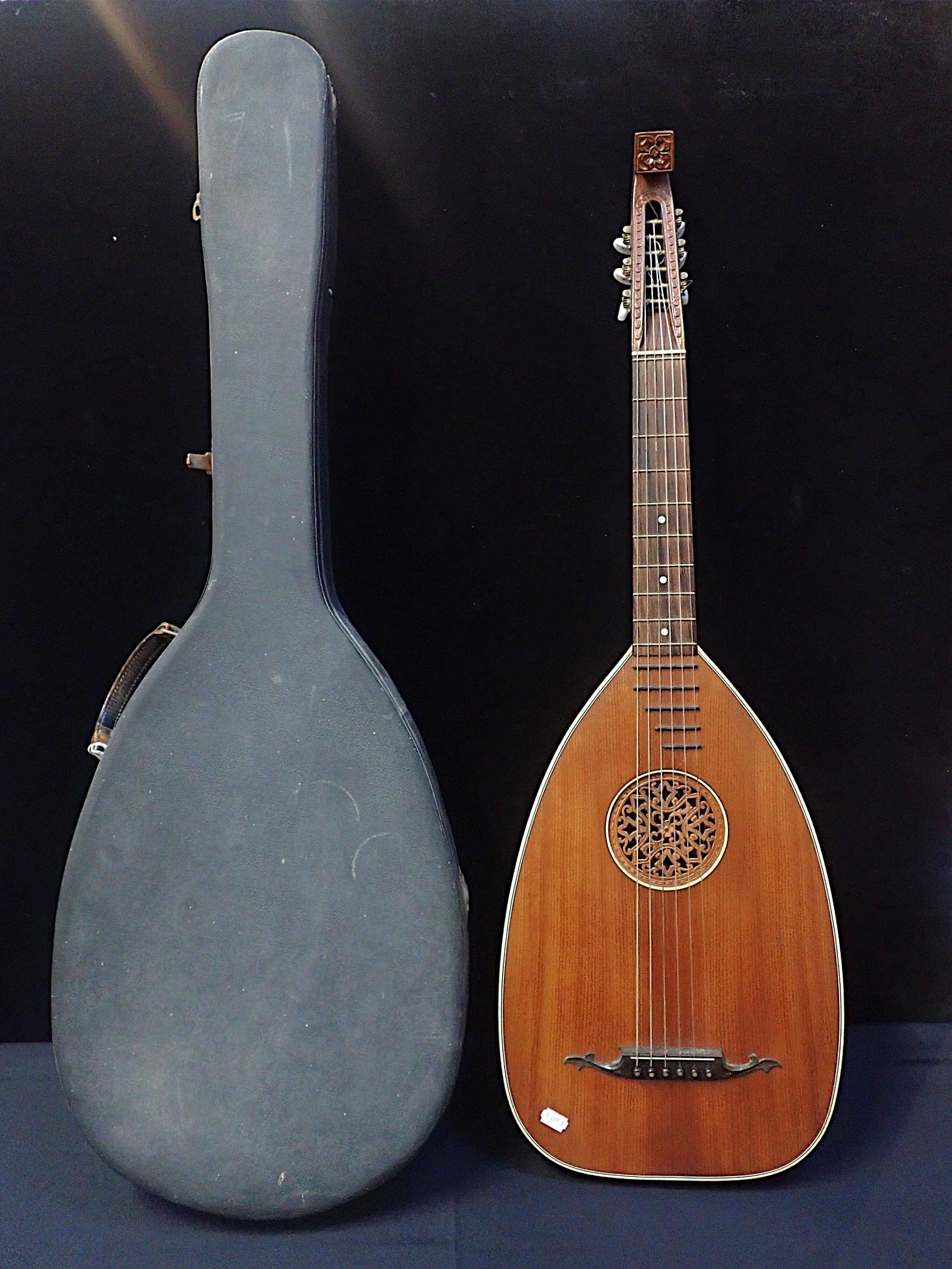 with carved and fretted grille over the sound hole, cased, 20th century