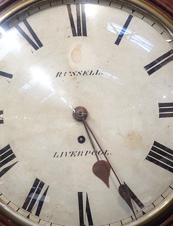 (timepiece) with single train fusee movement and 30cm convex dial and glass, by Russell of Liverpool (needs attention)